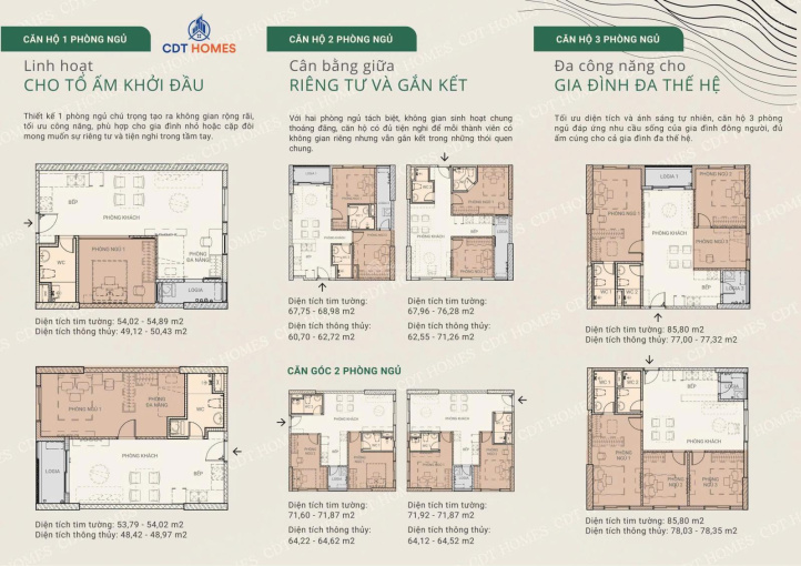 • Diện tích căn hộ: Từ 50m² – 80m²