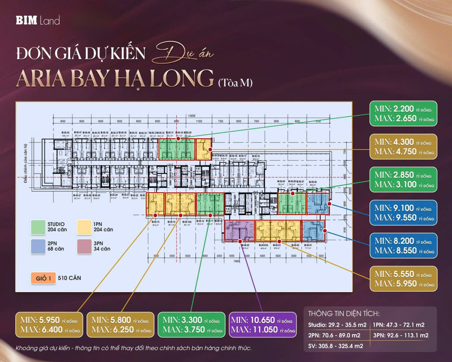 Dự án Aria Bay Hạ Long được xây dựng trên diện tích hơn 10ha được thiết kế hơn 40 tầng với 2000 căn hộ nằm ngay sát bãi tắm Bán đảo 3 khu đô thị Hạ Long Marina. Dự án gồm 2 block A và B nối tiếp nhau khoảng cách 2 tòa 100m gồm loại hình sản phẩm: Căn hộ 1 P.Ngủ, 2 Ngủ, 3 Ngủ và Penthouse cao cấp. Diện tích: 36m2 – 45m2 – 72m2 – 96m2 – 160m2.