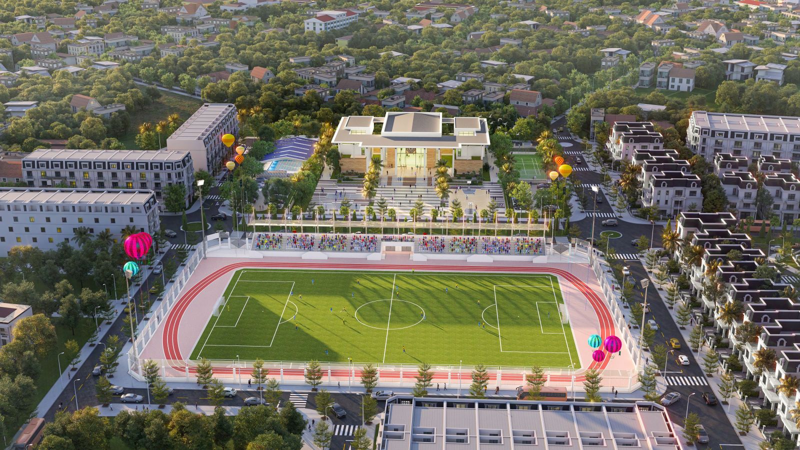 • Tiện ích đầy đủ: Dự án sở hữu 22 tiện ích hiện đại, đáp ứng mọi nhu cầu sống như: sân vận động, trung tâm văn hóa – thể thao, bể bơi ngoài trời, khu vui chơi trẻ em, quảng trường nghệ thuật…