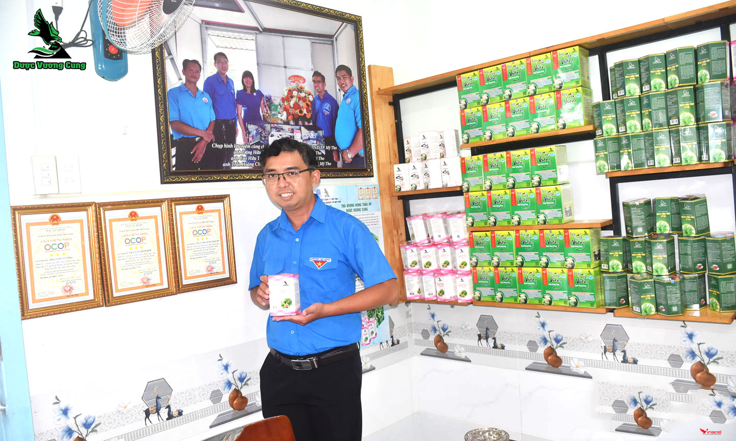 UBND tỉnh Tiền Giang vừa có Quyết định phê duyệt kết quả đánh giá, phân hạng và công nhận sản phẩm OCOP Tiền Giang đợt 1 năm 2022. Trong quyết định phê duyệt lần này có 3 sản phẩm hạng 3 sao của Cơ sở Sản xuất Thương mại Dịch vụ quốc tế Dược Vương Cung (địa chỉ tại số 615, ấp Bình Phong, xã Tân Mỹ Chánh, TP. Mỹ Tho). Đó là 3 sản phẩm khởi nghiệp của đoàn viên trẻ Lê Vương Quốc Hùng.