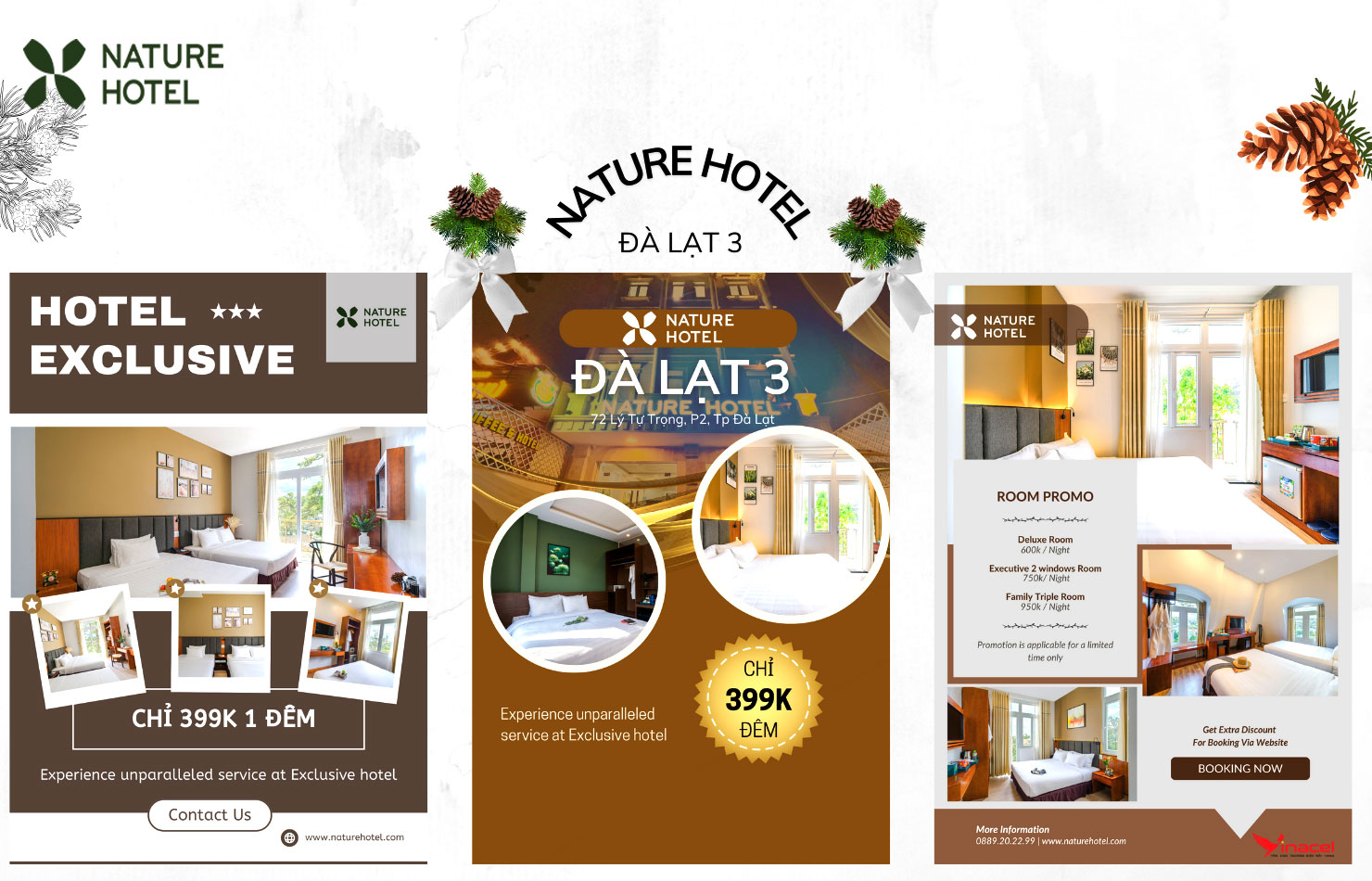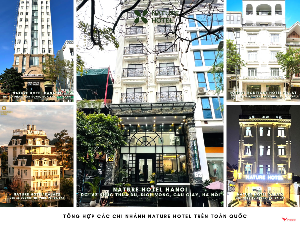 Là chuỗi khách sạn thuộc Công Ty Nature Hospitality nổi tiếng với những nơi lưu trú có vị trí đắc địa và thiết kế riêng biệt ở các thành phố DU LỊCH nổi tiếng tại Việt Nam. Công ty kinh doanh trong lĩnh vực nhà hàng khách sạn 3* hệ thống rộng khắp các thành phố lớn.