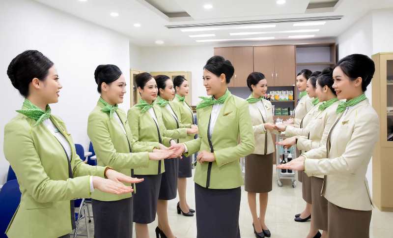 • Các tiếp viên Bamboo Airways phục vụ, chăm sóc tỉ mỉ, chu đáo. Luôn chào đón hành khách với nụ cười rạng rỡ, bàn tay trang trọng đặt bên ngực phải. Đồng thời luôn lắng nghe, chăm sóc, hỗ trợ hành khách suốt hành trình bay.
