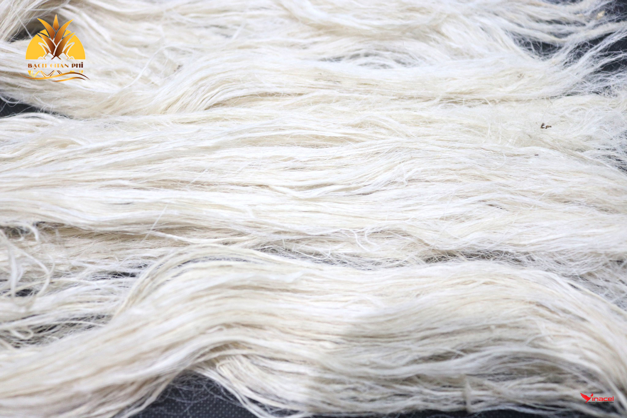 . Chiết xuất sợi: Vỏ và lá dày hơn được bóc thủ công.Các phần chiết xuất được đưa qua các con lăn áp lực trong máy để tách xơ tốt. Trước khi chế biến tiếp, nước ép sẽ được loại bỏ khi lá đi qua trục lăn như trong máy ép mía.