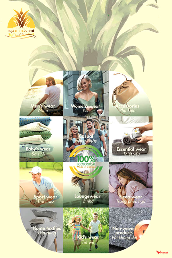 Các ứng dụng kỹ thuật của sợi dứa bao gồm trang phục cưới và dự tiệc, trang phục thường ngày và trang phục lịch sự. Với kết cấu bóng mượt, sợi dứa đang được sử dụng để thay thế cho loại bông đắt tiền vốn được sử dụng trong các trang phục tiện ích. Sợi PALF (sợi lá dứa) được sử dụng trong lĩnh vực aggrotech, hometech và clothtech (vải kỹ thuật). Từ dây thừng đến túi xách, thảm, khăn trải giường và ghế da, PALF có thể được sử dụng một mình hoặc ở dạng pha trộn với các loại sợi khác để thay thế các loại sợi tiêu thụ nhiều nước hơn. Họ được xếp vào danh sách những công ty sáng tạo tốt nhất trong ngành sản xuất giấy và sợi composite. Với các vitamin, khoáng chất và hợp chất đa dạng, sợi PALF được ứng dụng trong các ngành công nghiệp trị liệu, mỹ phẩm và dược phẩm.