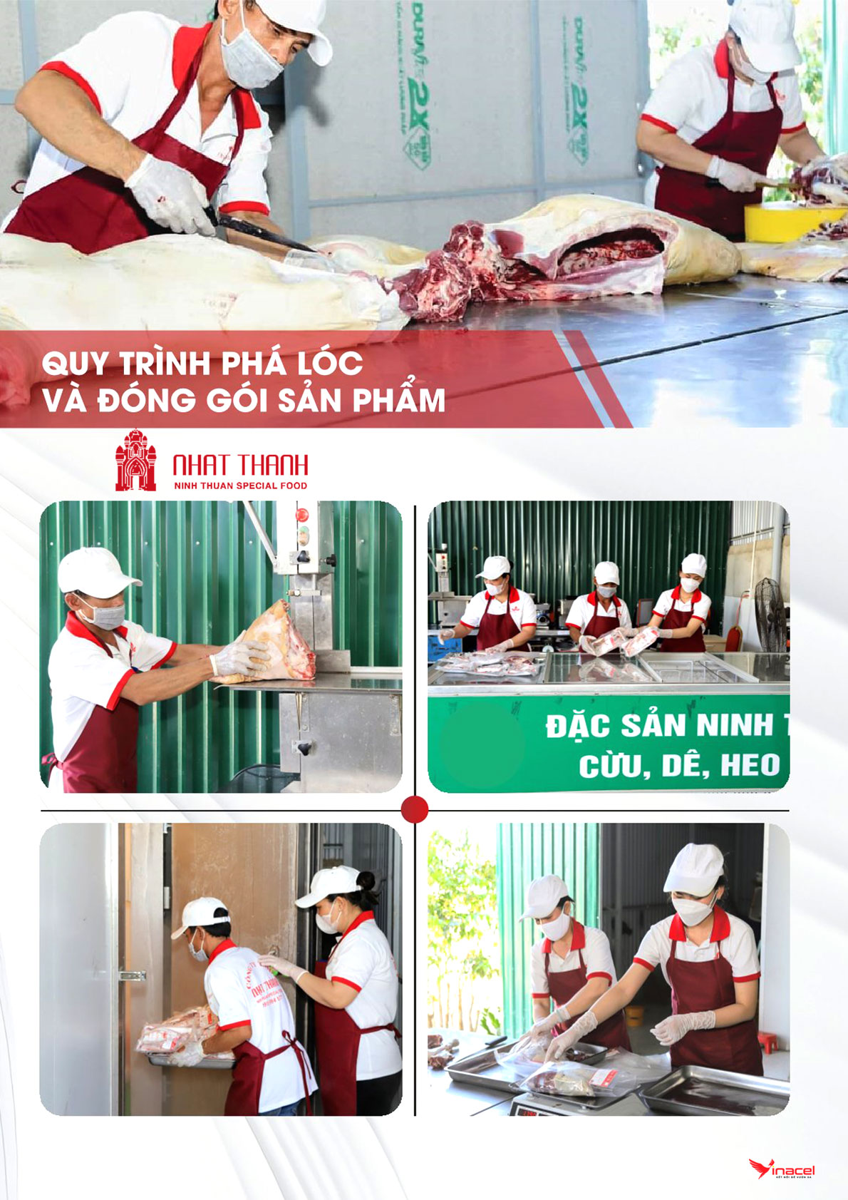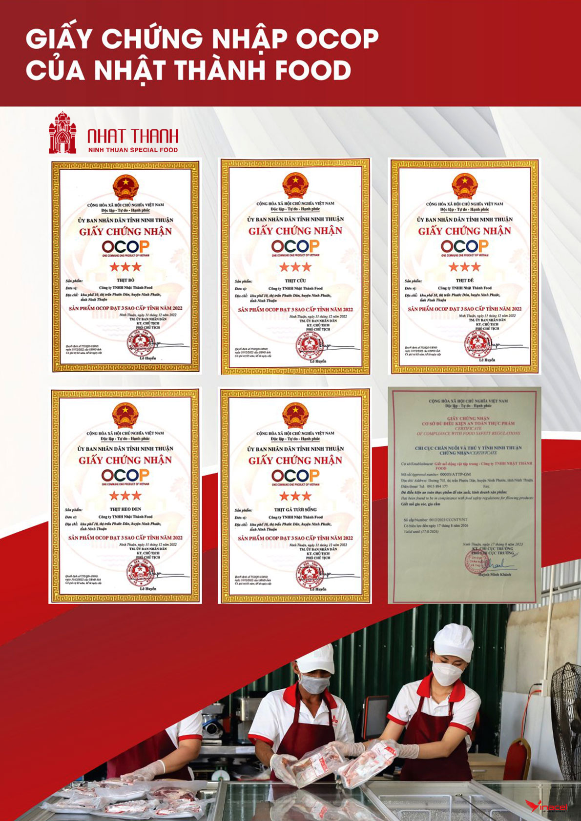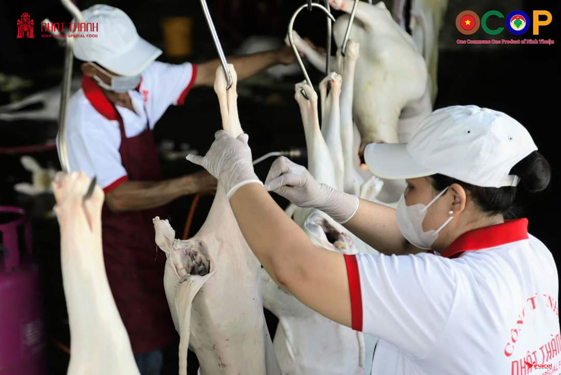 Với tổng diện tích hơn 5.300 m2, Với hệ thống máy móc hiện đại, hệ thống xử lý nước thải đạt quy chuẩn kỹ thuật quốc gia. công suất giết mổ 200 con/giờ. Nguồn cung và sản phẩm thịt gia súc trước và sau khi giết mổ tại đây được kiểm soát chặt chẽ của cơ quan thú y, sản phẩm được bảo quản đông lạnh, vệ sinh ATTP theo quy định. Sản phẩm của Công ty đủ điều kiện cung ứng cho thị trường trong và ngoài nước. Các sản phẩm OCOP của Nhật Thành Food gồm thịt: Dê – Cừu – Bò – Heo đen và Gà ta tươi sống đạt 3 sao cấp tỉnh.