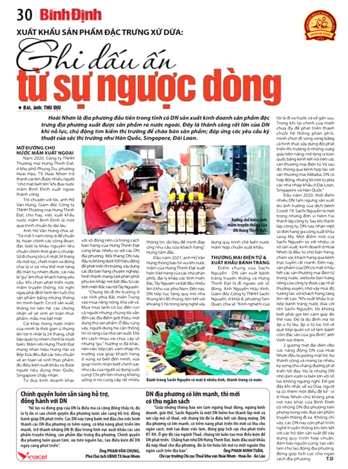 Đến nay ở Bình Định, Hưng Thịnh Đạt là doanh nghiệp đầu tiên trong lĩnh vực sản xuất, kinh doanh nước mắm truyền thống có đơn hàng xuất khẩu. Thành công trong thương vụ đầu tiên với đối tác Hàn Quốc tạo động lực để công ty tìm kiếm thị trường mới. Trong tháng 10.2020, Hưng Thịnh Đạt kết nối với 2 đối tác ở thị trường Singapore và Malaysia.