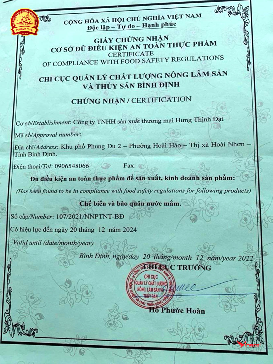 Công ty TNHH Sản xuất thương mại Hưng Thịnh Đạt (khu phố Phụng Du II, xã Hoài Hảo, TX Hoài Nhơn) xuất khẩu đơn hàng 4.000 lít nước mắm sang thị trường Hàn Quốc theo hợp đồng với đối tác. Ông Hồ Văn Hưng, Giám đốc Công ty TNHH Sản xuất thương mại Hưng Thịnh Đạt cho biết, hợp đồng cung ứng sản phẩm được ký kết vào giữa tháng 9.2020; đơn hàng này là đơn xuất khẩu chính thức đầu tiên của công ty sang Hàn Quốc.