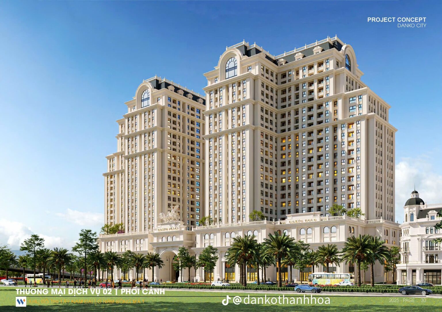 Danko Royal Thanh Hóa được thiết kế theo quy hoạch tổng thể chuẩn mực, lấy cảm hứng từ thành phố Hoàng gia châu Âu, với kiến trúc tân cổ điển đối xứng và sang trọng.