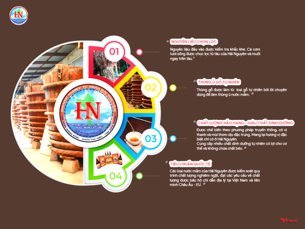 Doanh nghiệp tư nhân Hải Nguyên chuyên sản xuất nước mắm Phú Quốc với nguyên liệu chọn lọc, thùng ủ gỗ tự nhiên, chất lượng hảo hạng - giàu chất dinh dưỡng và tiêu chuẩn quốc tế.