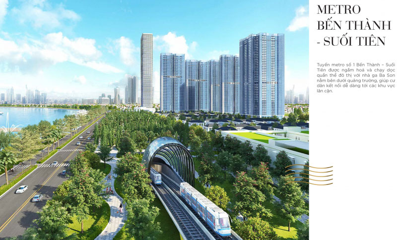 • Dự án được tích hợp ga Metro Ba Son (ga số 3) trên tuyến Metro số 1, với lối đi trực tiếp từ bên trong, giúp cư dân di chuyển nhanh chóng đến các khu vực trọng điểm mà không cần dùng đến phương tiện cá nhân.