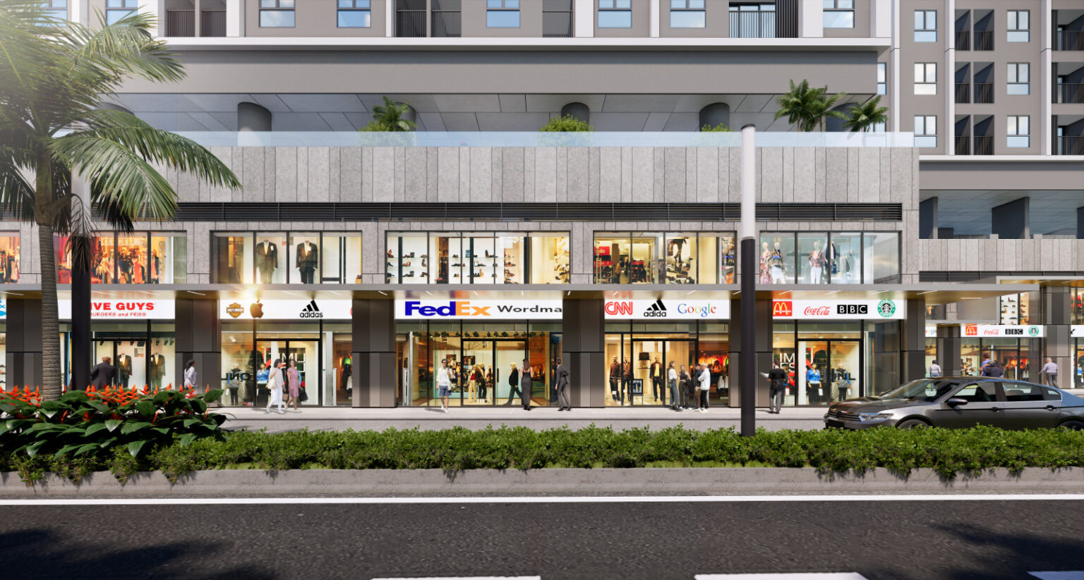 • Khu shophouse thương mại: Nằm tại tầng trệt và dọc các tuyến đường nội bộ, tạo trục kinh doanh sầm uất, đồng thời phục vụ trực tiếp cư dân nội khu.