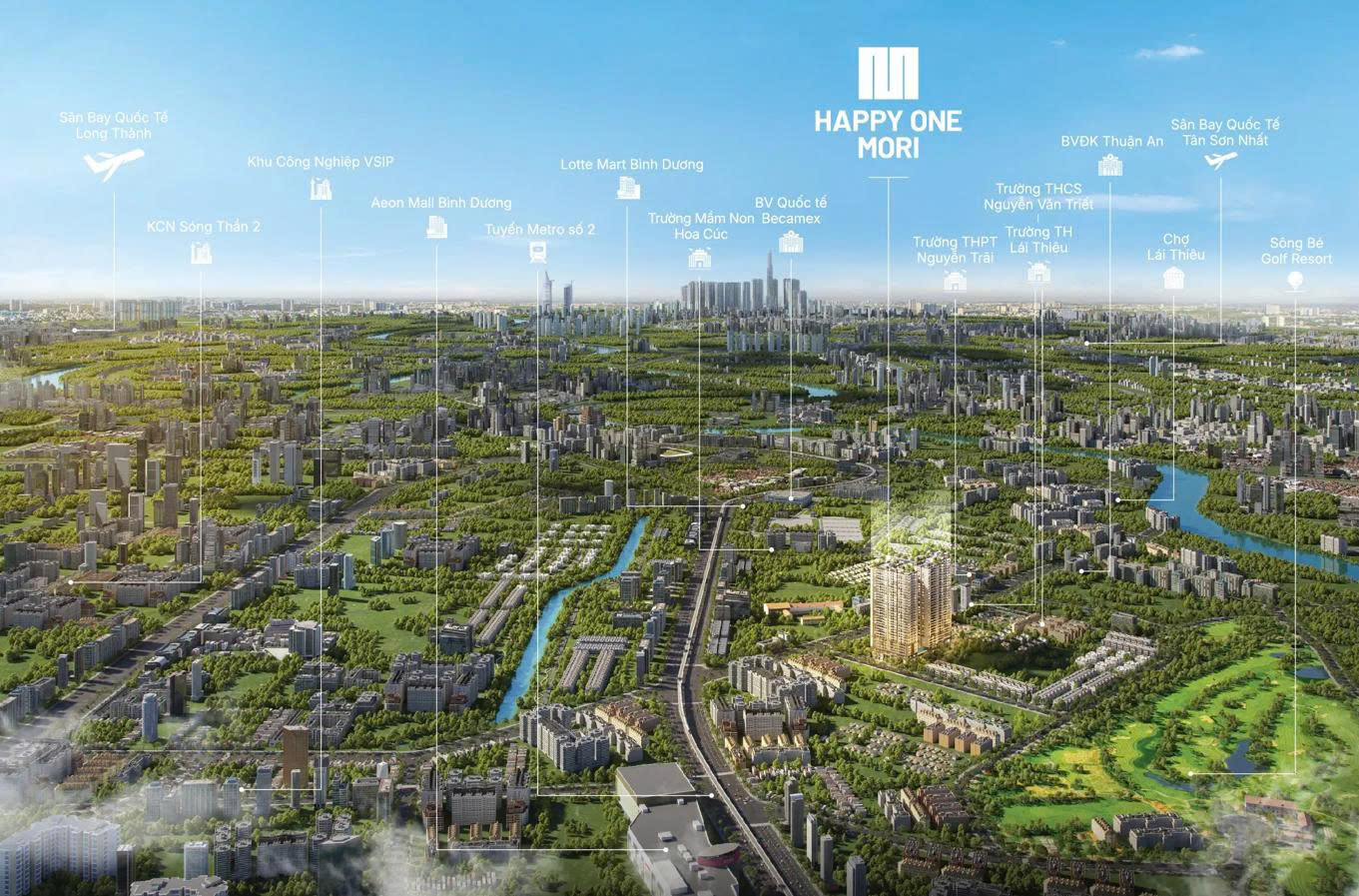 Happy One Mori đánh dấu một bước tiến quan trọng trong hành trình kiến tạo không gian sống đẳng cấp tại Bình Dương. Dự án không chỉ là một khu căn hộ mà còn là biểu tượng mới của phong cách sống hiện đại, tiện nghi và bền vững tại Lái Thiêu, thành phố Thuận An. Vạn Xuân Group, chủ đầu tư dự án, cam kết mang đến một môi trường sống tối ưu, nơi công nghệ thông minh hòa quyện cùng không gian xanh mát, tạo nên một cộng đồng thịnh vượng và tràn đầy niềm vui.