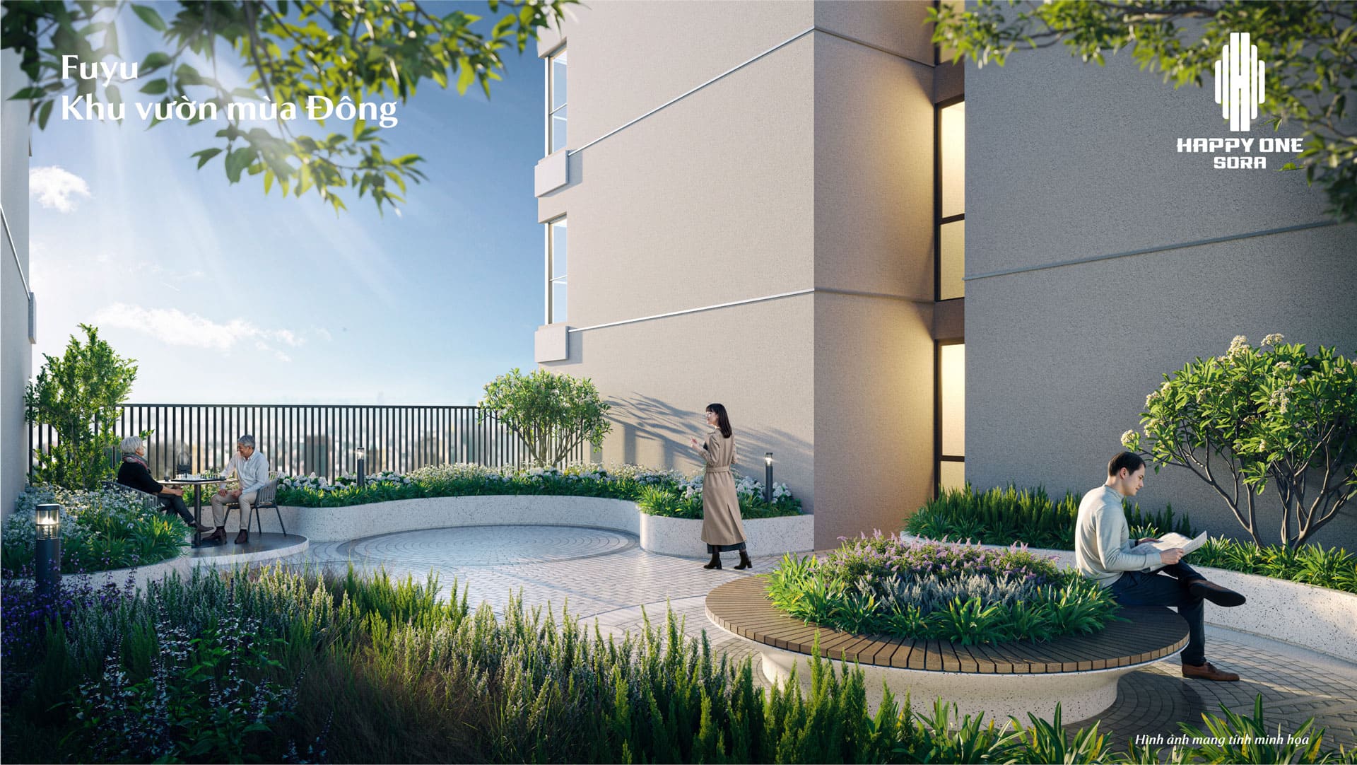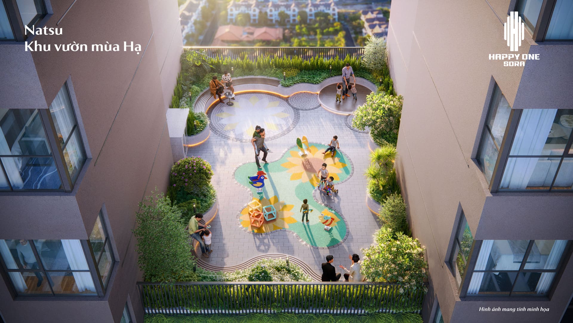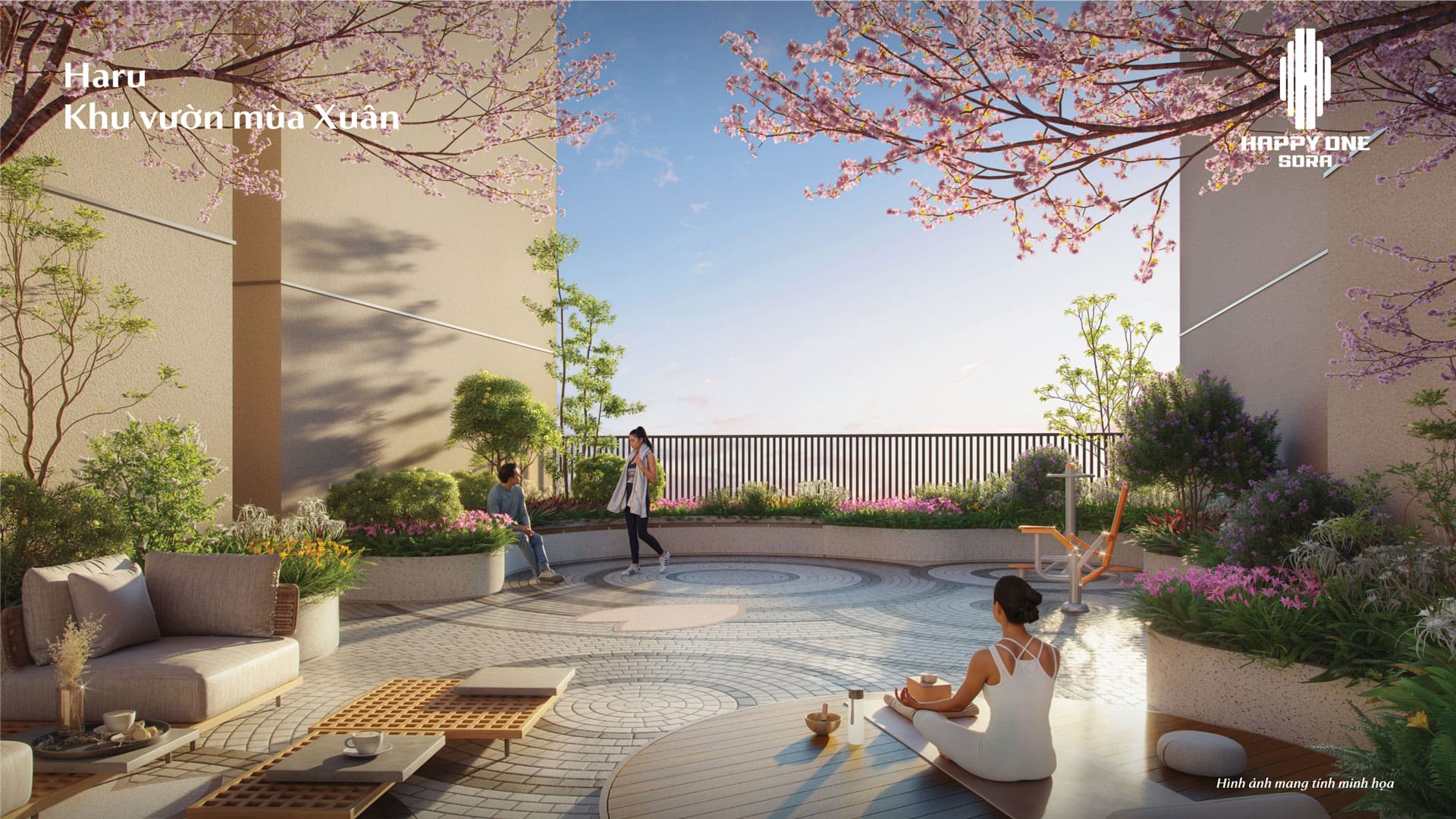 Lấy cảm hứng từ nghệ thuật sân vườn Nhật Bản, Happy One Sora mang đến những “ốc đảo” xanh mát, giúp cư dân tìm về sự an nhiên, tĩnh tại: