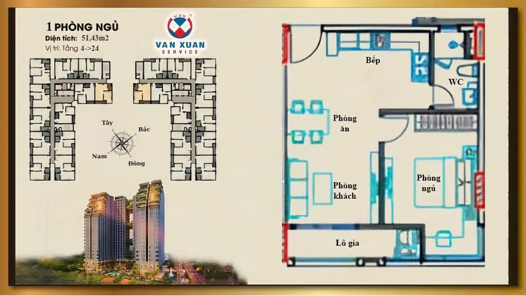 Loại hình căn hộ: 1PN (46-51m²), 2PN (59-87m²), 3PN (108-129m²), Duplex, Sân vườn