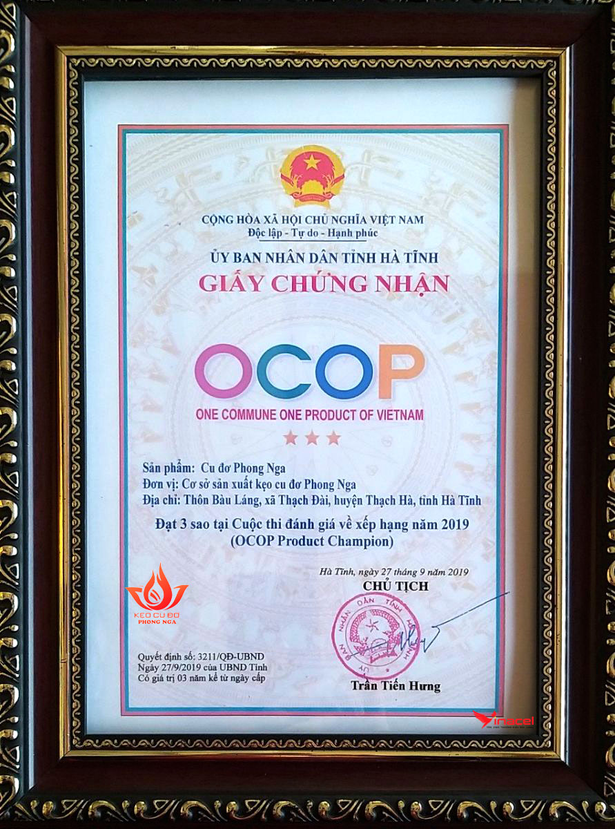Năm 2010, cơ sở chính thức được Cục Sở hữu trí tuệ (Bộ Khoa học và Công nghệ) cấp giấy chứng nhận độc quyền cho sản phẩm Kẹo cu đơ Phong Nga, trở thành cơ sở sản xuất kẹo cu đơ đầu tiên tại Hà Tĩnh đạt chứng nhận thương hiệu cho cho sản phẩm kẹo cu đơ đặc trưng vùng miền.