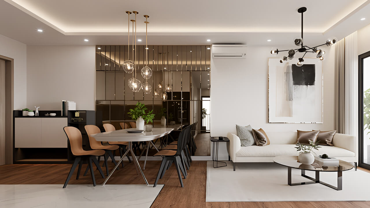 Căn hộ 3 phòng ngủ: diện tích 95 – 120m², thiết kế sang trọng, phù hợp gia đình nhiều thế hệ.