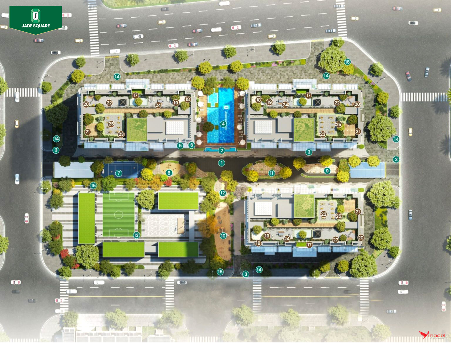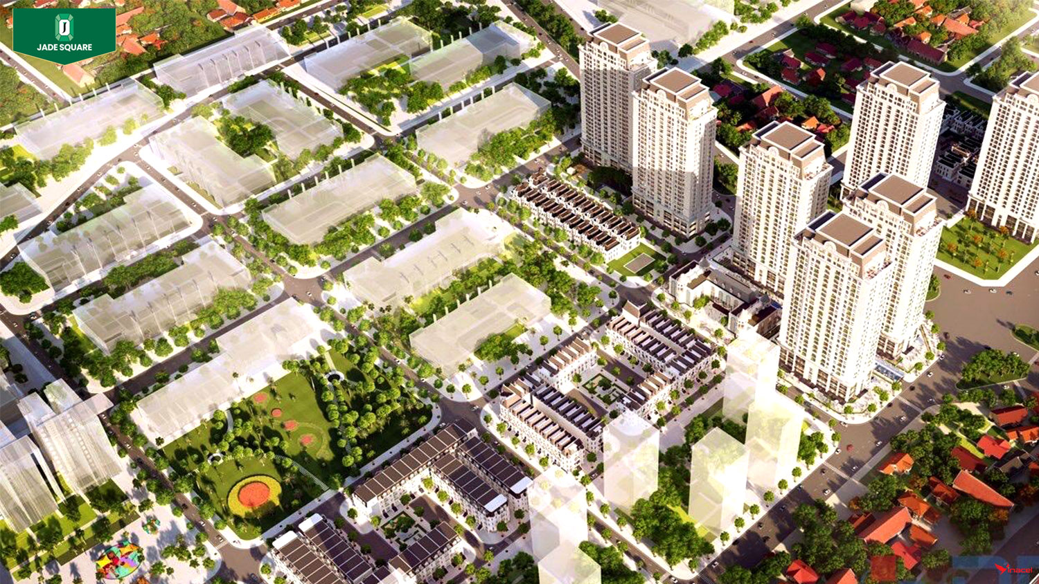 • Không gian sống xanh và năng động tại Jade Square – nơi cư dân tận hưởng tiện ích thể thao, gắn kết cộng đồng trong khuôn viên hiện đại