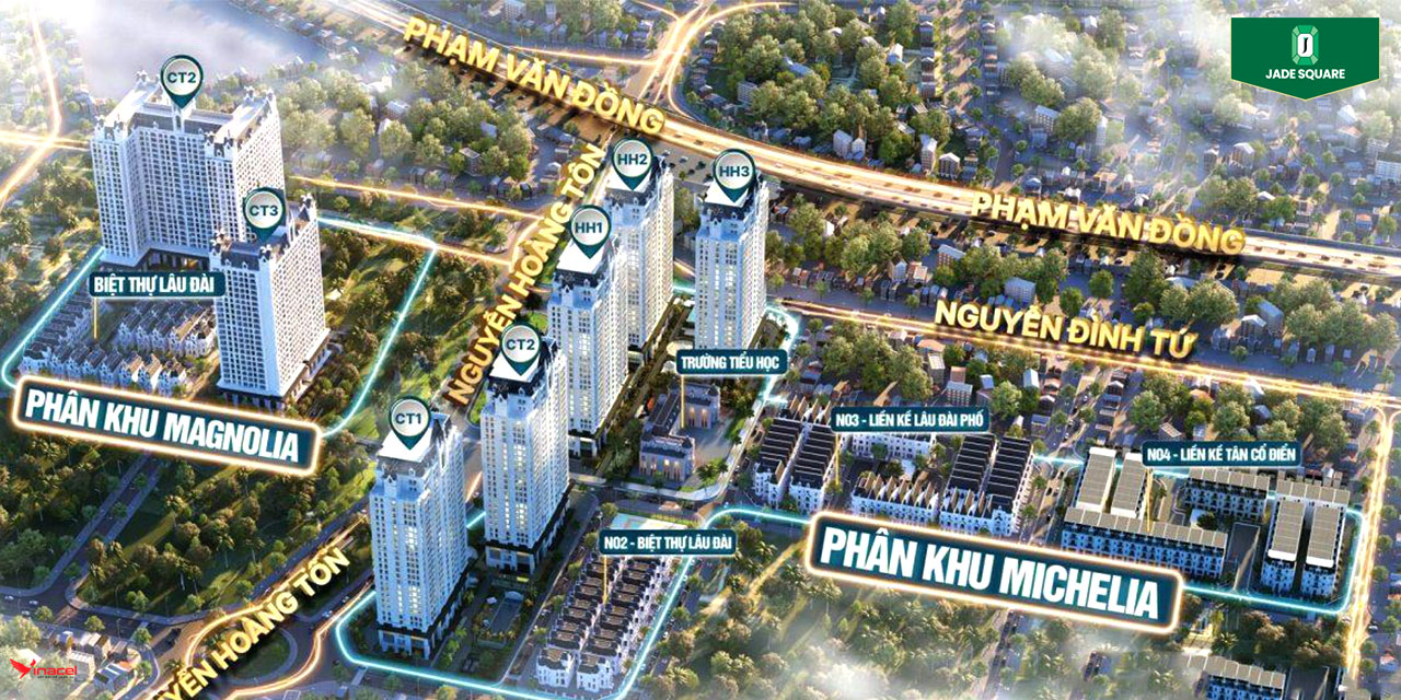 Jade Square có vị trí đắc địa tọa lạc tại khu đô thị Bắc Từ Liêm – Chèm, phường Xuân Đỉnh, có vị trí đắc địa trung tâm của quận Nam Từ Liêm. The Jade Square là một siêu dự án có quy mô và vị trí tuyệt đẹp kết nối với hạ tầng trong khu vực CBD mới của thủ đô, hứa hẹn là tâm điểm bất động sản khu vực phía Tây thủ đô.