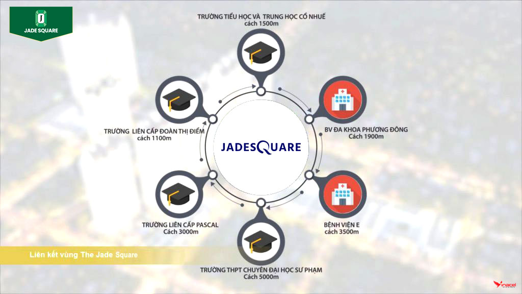 Vị trí của chung cư Jade Square dễ dàng kết nối đến các cơ sở y tế hàng đầu trong thành phố. Không gian sống tại chung cư Jade Square không chỉ là một môi trường thoáng đãng và hiện đại, mà còn mang đến cho cư dân sự an tâm bởi vị trí đắc địa của dự án.