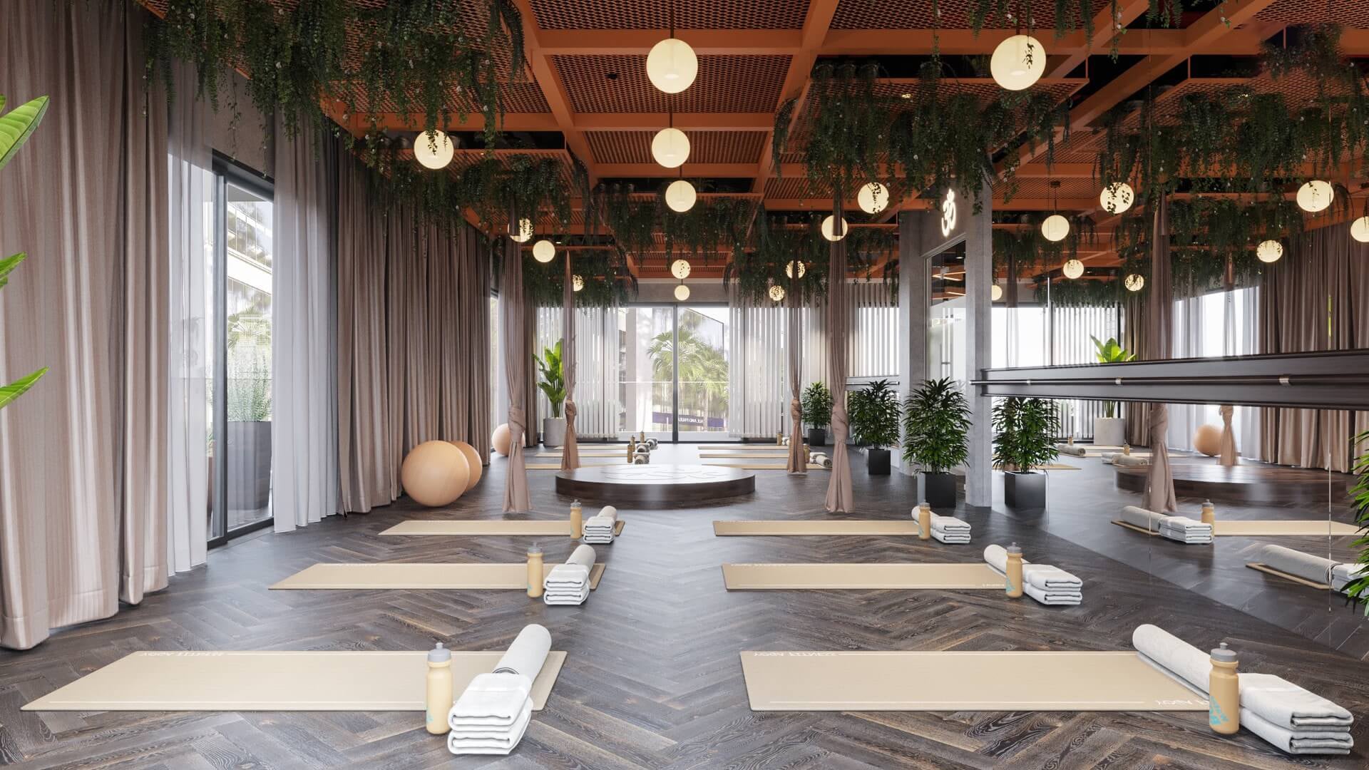 Khu vực Yoga được bố trí tách biệt với không gian yên tĩnh, thảm tập chuyên dụng, hệ thống âm thanh nhẹ nhàng. Cư dân có thể tham gia các lớp Yoga tập thể hoặc tự tập luyện theo thời gian riêng. Không gian Yoga được thiết kế với ánh sáng tự nhiên, tạo cảm giác thư giãn và kết nối với thiên nhiên.