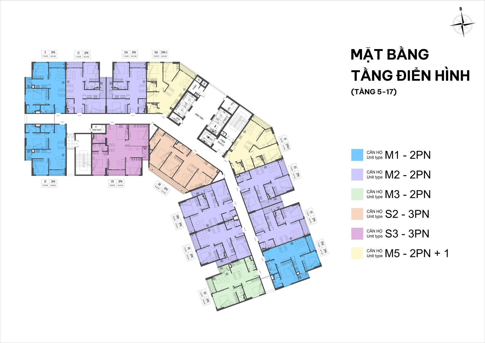 - Tầng 4- tầng 17: Bố trí các căn hộ chung cư (196 căn hộ nhà ở thương mại)