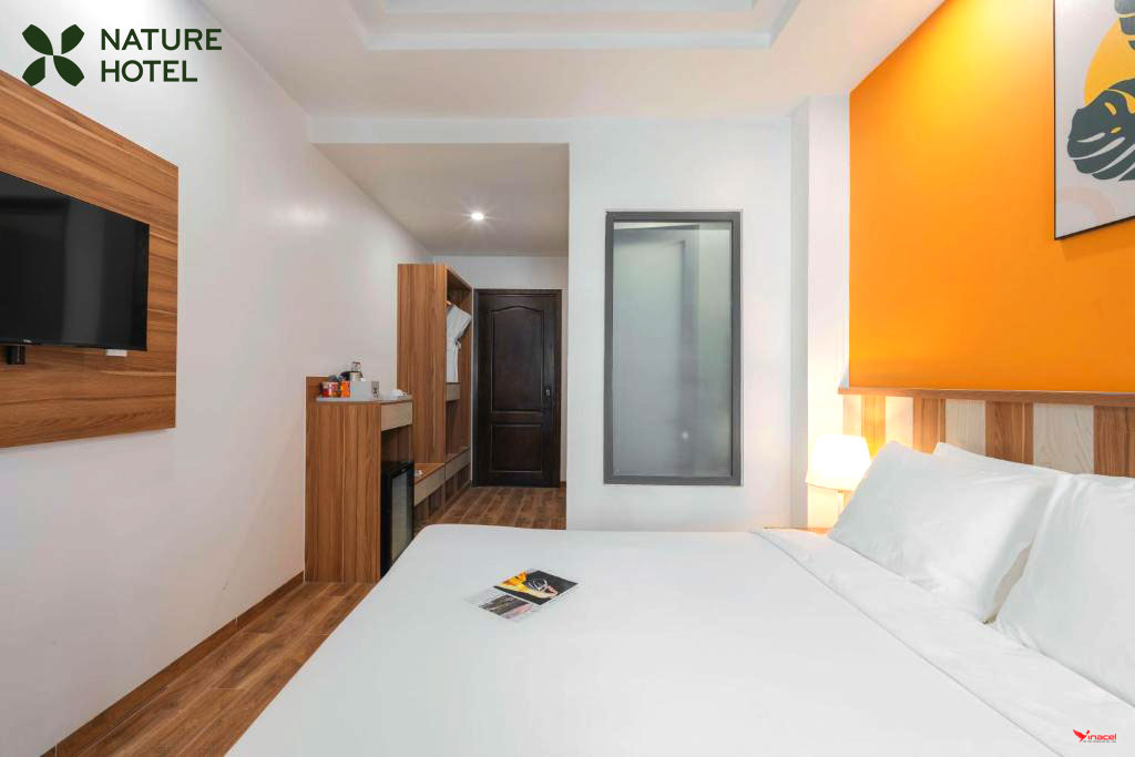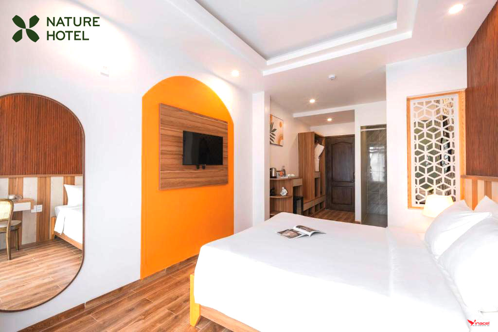 Khách sạn cung cấp đa dạng các hạng phòng nghỉ rộng rãi, thoáng đãng, được trang bị đầy đủ tiện nghi hiện đại như TV thông minh, minibar, và Wi-Fi miễn phí. Lan tỏa tinh thần Touch Nature - Chạm vào thiên nhiên, Nature Hotel cam kết mang đến cho du khách trải nghiệm sống xanh và thân thiện với môi trường.