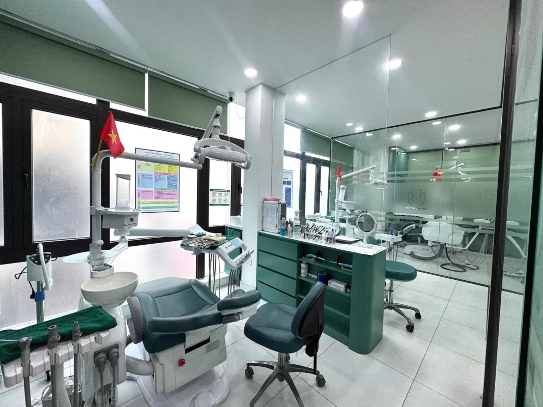 Cơ sở vật chất tại Quinn Dental cũng được đầu tư hiện đại, mang lại cảm giác chuyên nghiệp và thoải mái ngay từ khi bước vào. Không gian tiếp đón khách hàng rộng rãi, thiết kế sang trọng với quầy lễ tân nổi bật, hệ thống ghế chờ tiện nghi và sạch sẽ. Các phòng điều trị được trang bị ghế nha khoa đa năng, hệ thống đèn chiếu sáng, dụng cụ và máy móc chuyên dụng đạt chuẩn hỗ trợ bác sĩ thực hiện các ca điều trị chính xác và an toàn. Mỗi khu vực đều bố trí khoa học, có vách ngăn kính trong suốt tạo sự riêng tư nhưng vẫn đảm bảo thoáng đãng. Sự kết hợp giữa không gian thẩm mỹ và thiết bị công nghệ tiên tiến giúp khách hàng yên tâm hơn trong quá trình khám chữa và chăm sóc răng miệng tại Quinn Dental.