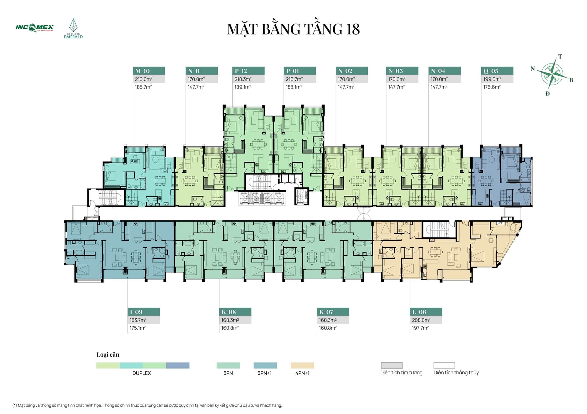 - Tầng 18 – 19: DT từ 147 – 160 – 185 – 197m2