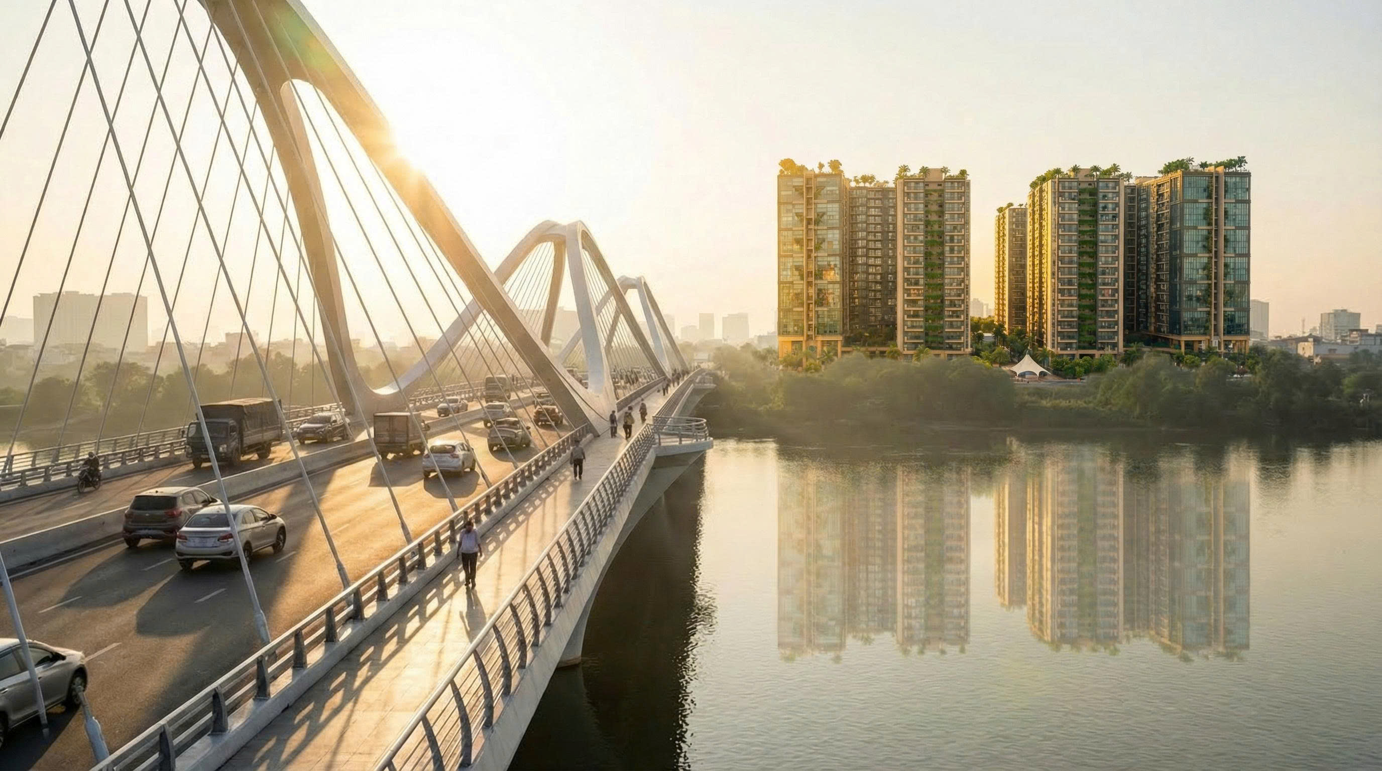 Ngoài ra hạ tầng xung quanh dự án cũng là một điểm lợi mang lại tiềm năng tăng giá cao trong tương lai. Theo quy hoạch và định hướng phát triển của TP Hà Nội thì sắp tới sẽ có hàng chục cây câu bắc qua Sông Hồng trong tương lai sẽ đêm lại một bước nhảy vọt để phát triển kinh tế trong thời gian tới.