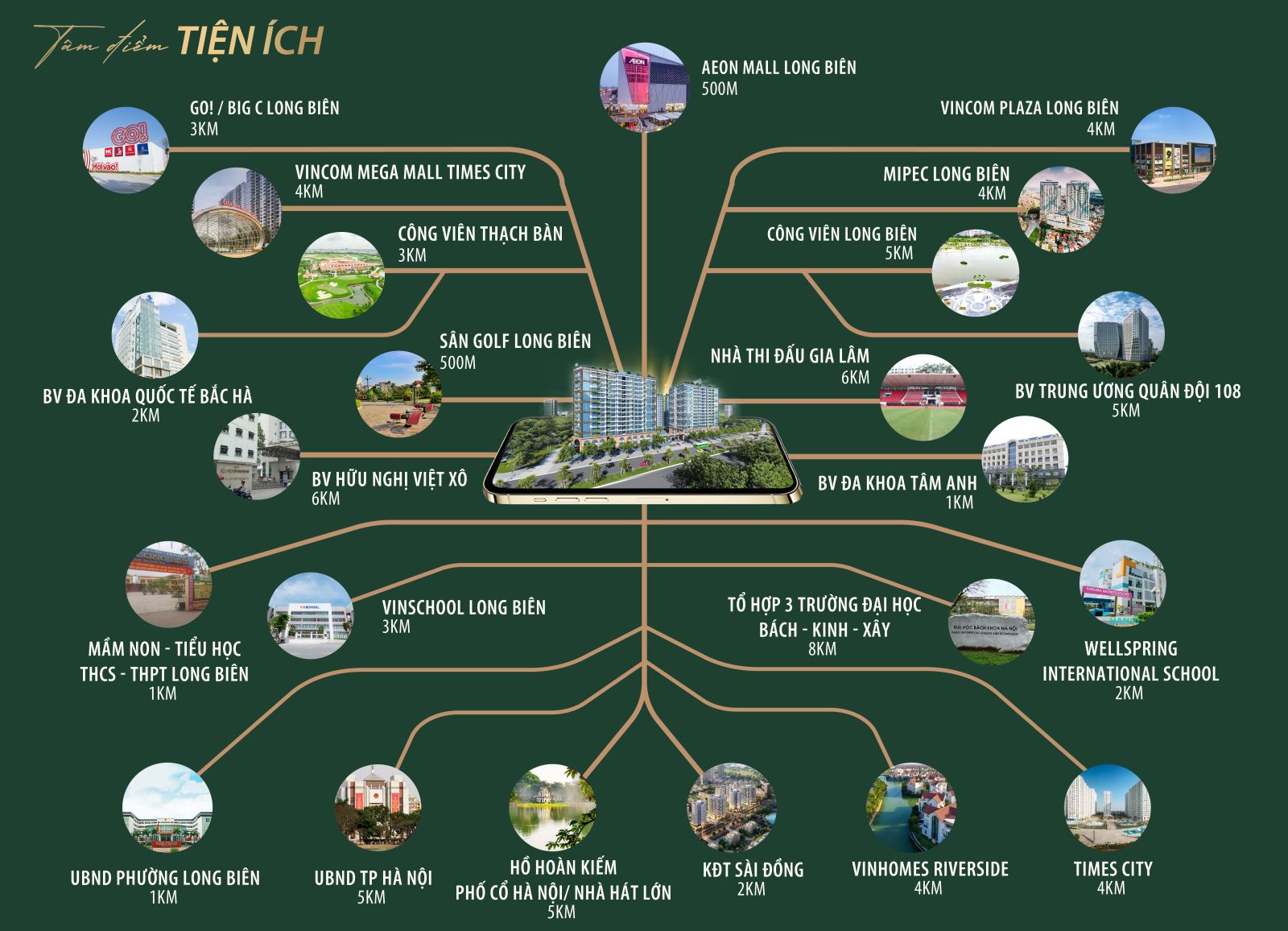 Ngoài ra, trong bán kính 1 km quanh Chung cư Platinum Cổ Linh Long Biên là hàng loạt các điểm giải trí hấp dẫn như trung tâm tâm thương mại Aeon Mall, sân golf Long Biên, Thảo Nguyên Hoa… Cư dân sẽ được thụ hưởng những dịch vụ/trải nghiệm đỉnh cao “có một không hai” chỉ với 5 – 10 phút di chuyển.