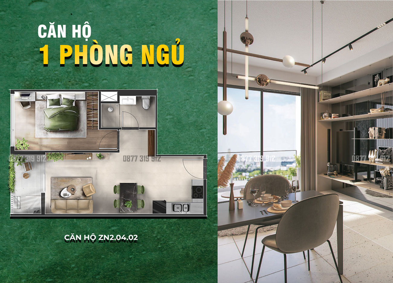 · Căn hộ 2PN – 1WC: 61 – 62m2