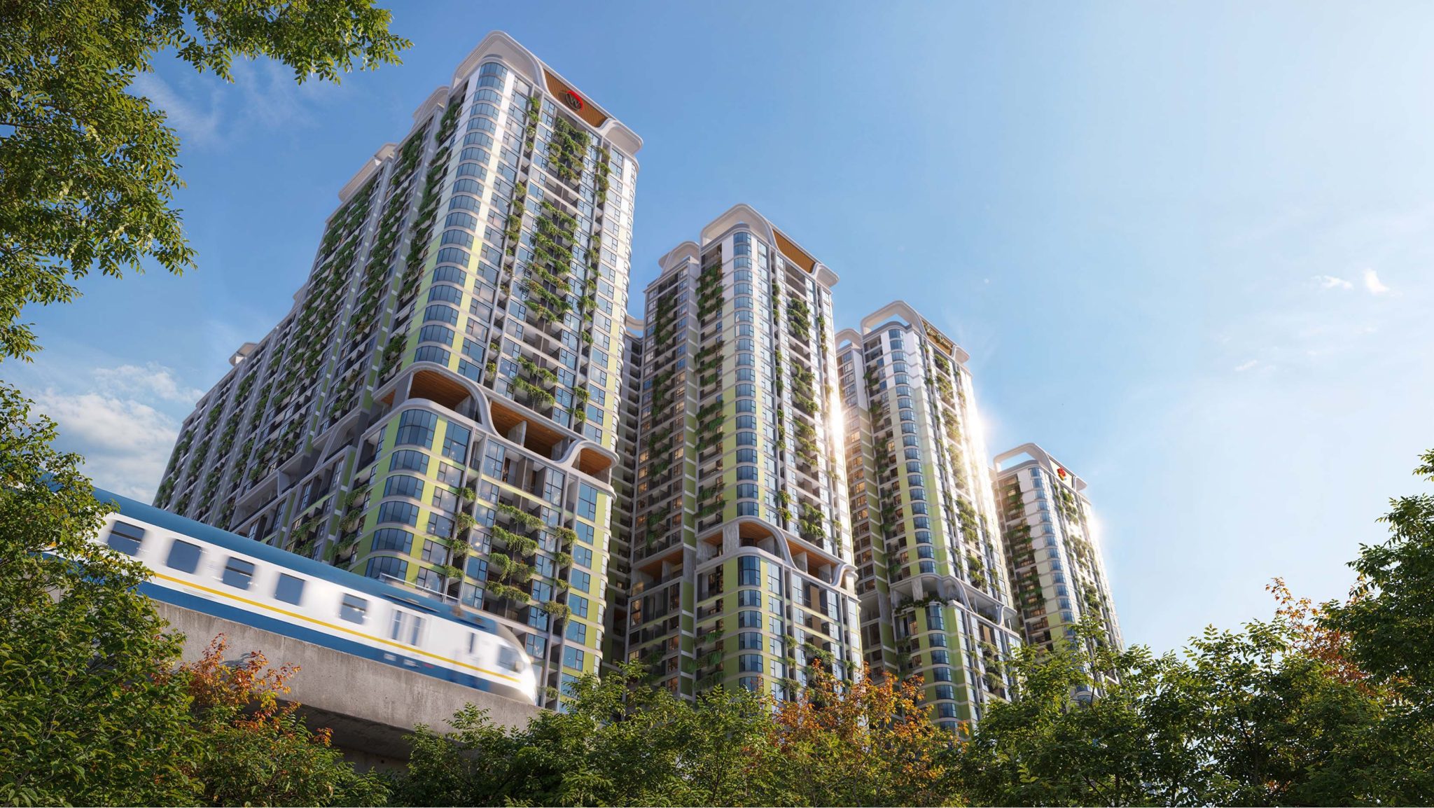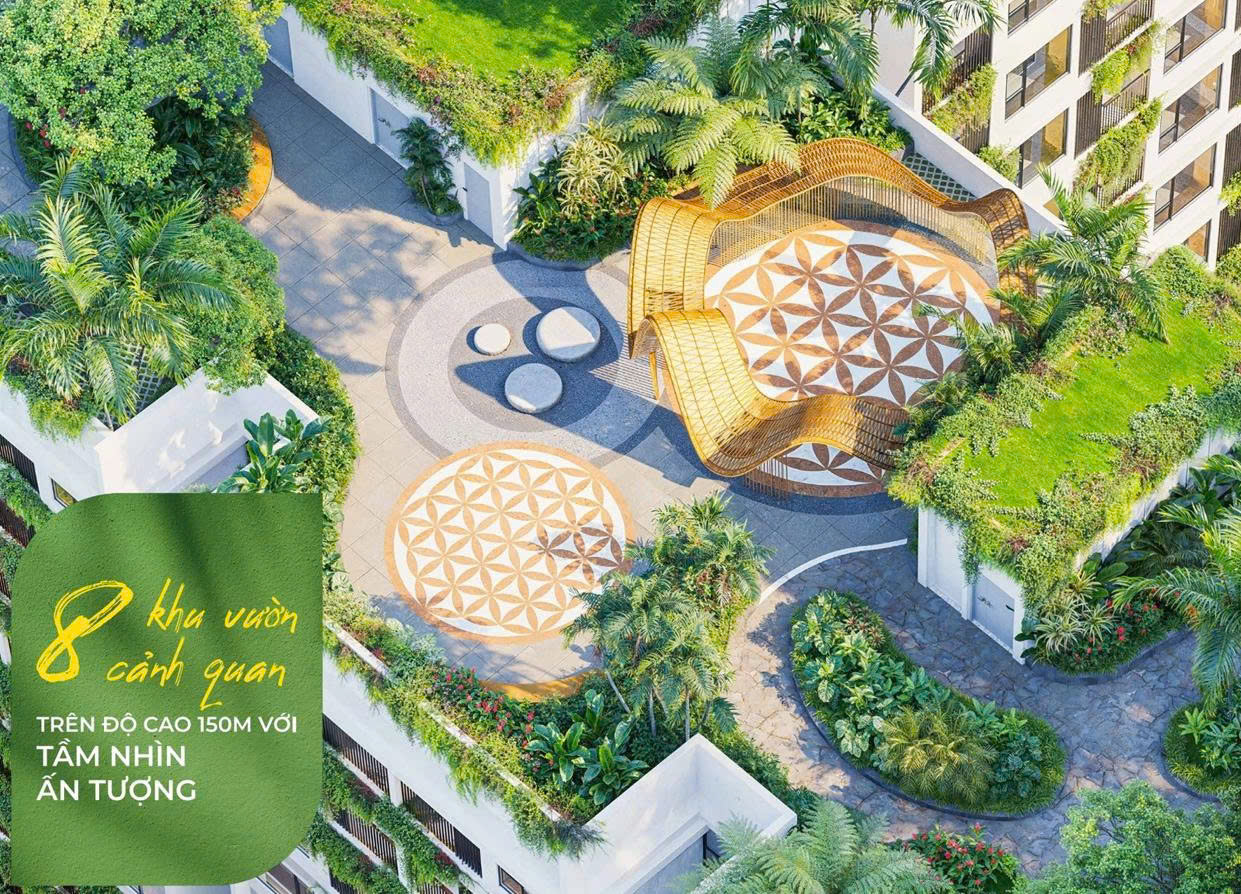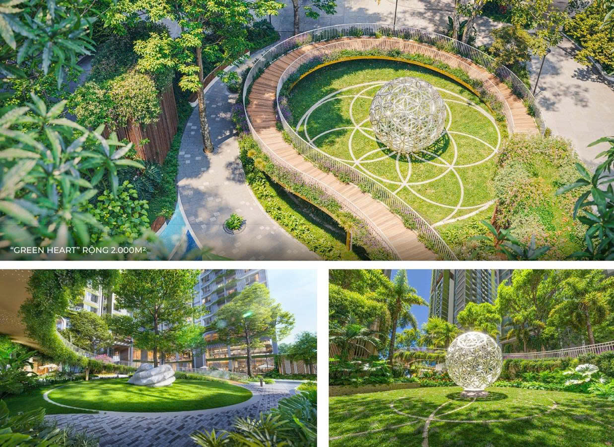 Hệ sinh thái xanh được lồng ghép hài hòa ngay trong mỗi tòa tháp, với cây xanh, vườn treo, tiểu cảnh được bố trí thông minh, mang đến không gian sống trong lành, gần gũi với thiên nhiên.