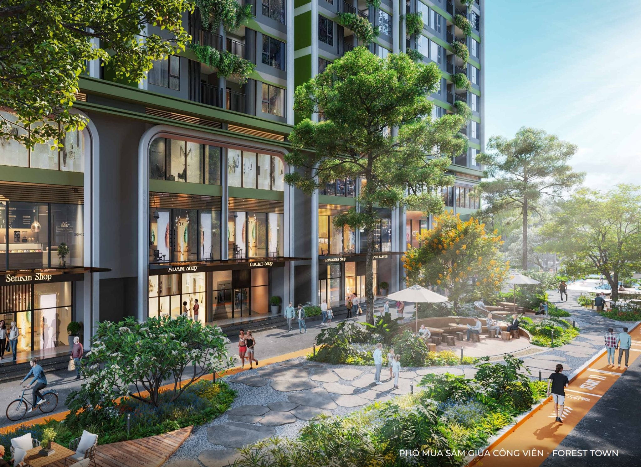 · Dòng suối nhiệt đới dài 300m uốn lượn giữa các khu tiện ích, tạo không gian thư giãn xanh mát.