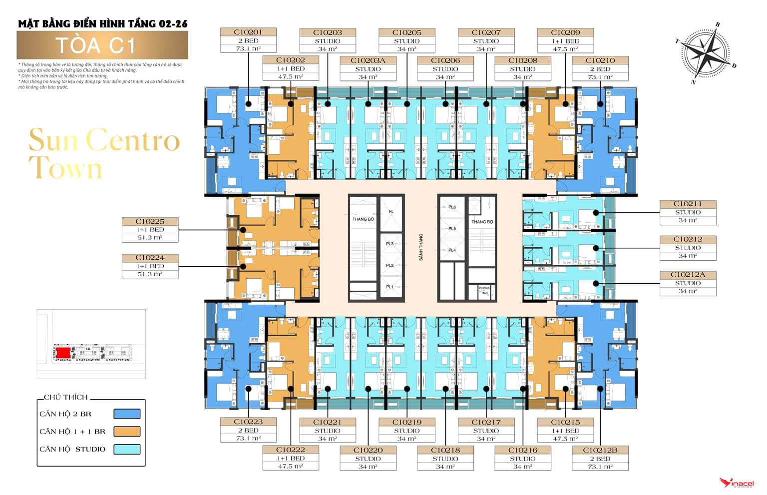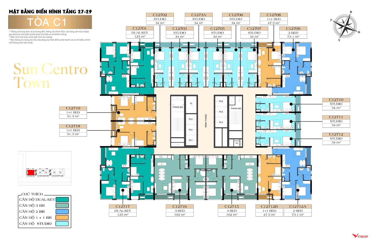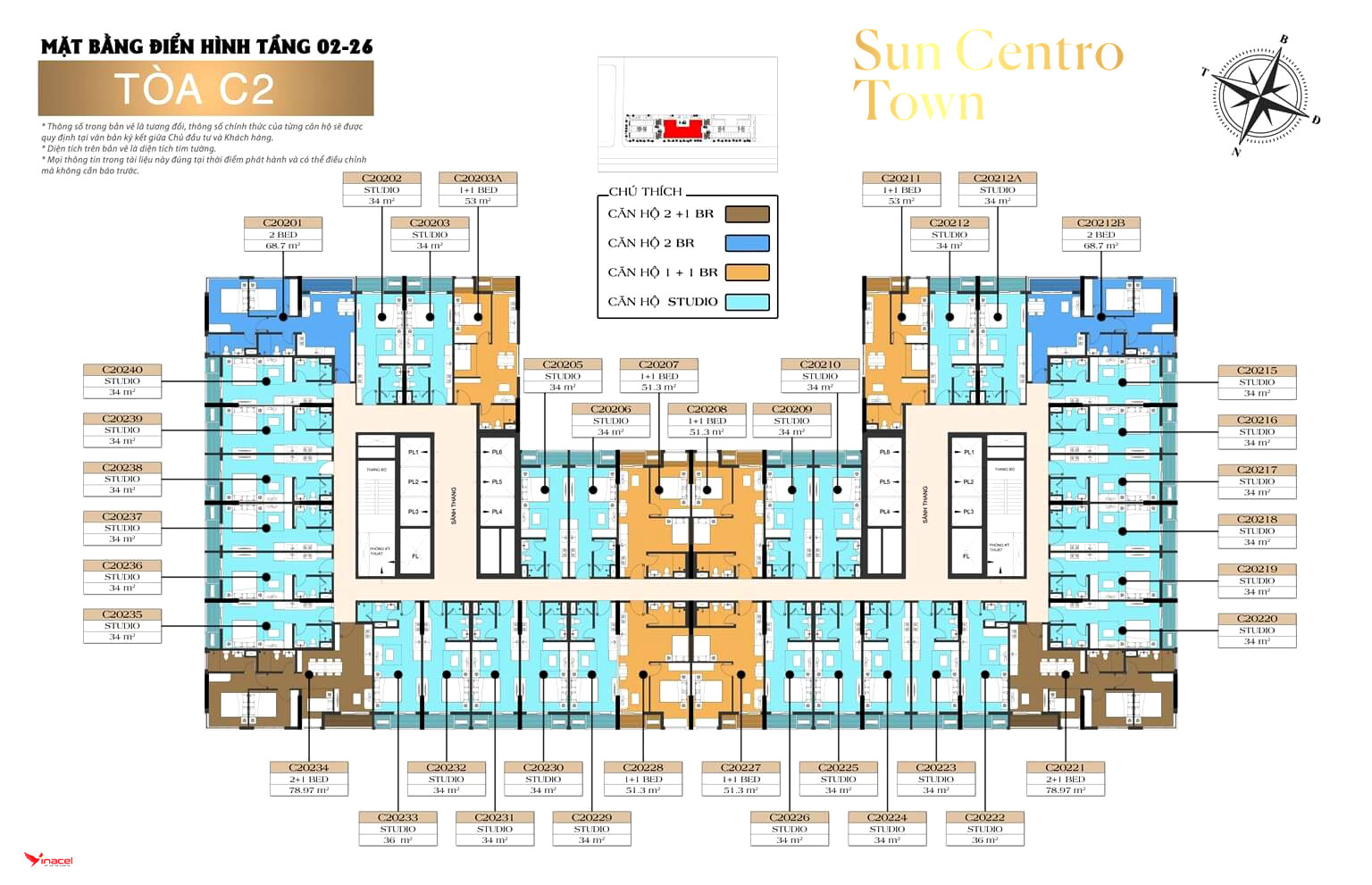 • Tầng 2-29 (chiều cao trần 3,5m): Căn hộ du lịch với đa dạng loại hình từ studio đến căn 3 phòng ngủ, phù hợp với nhiều đối tượng khách hàng.