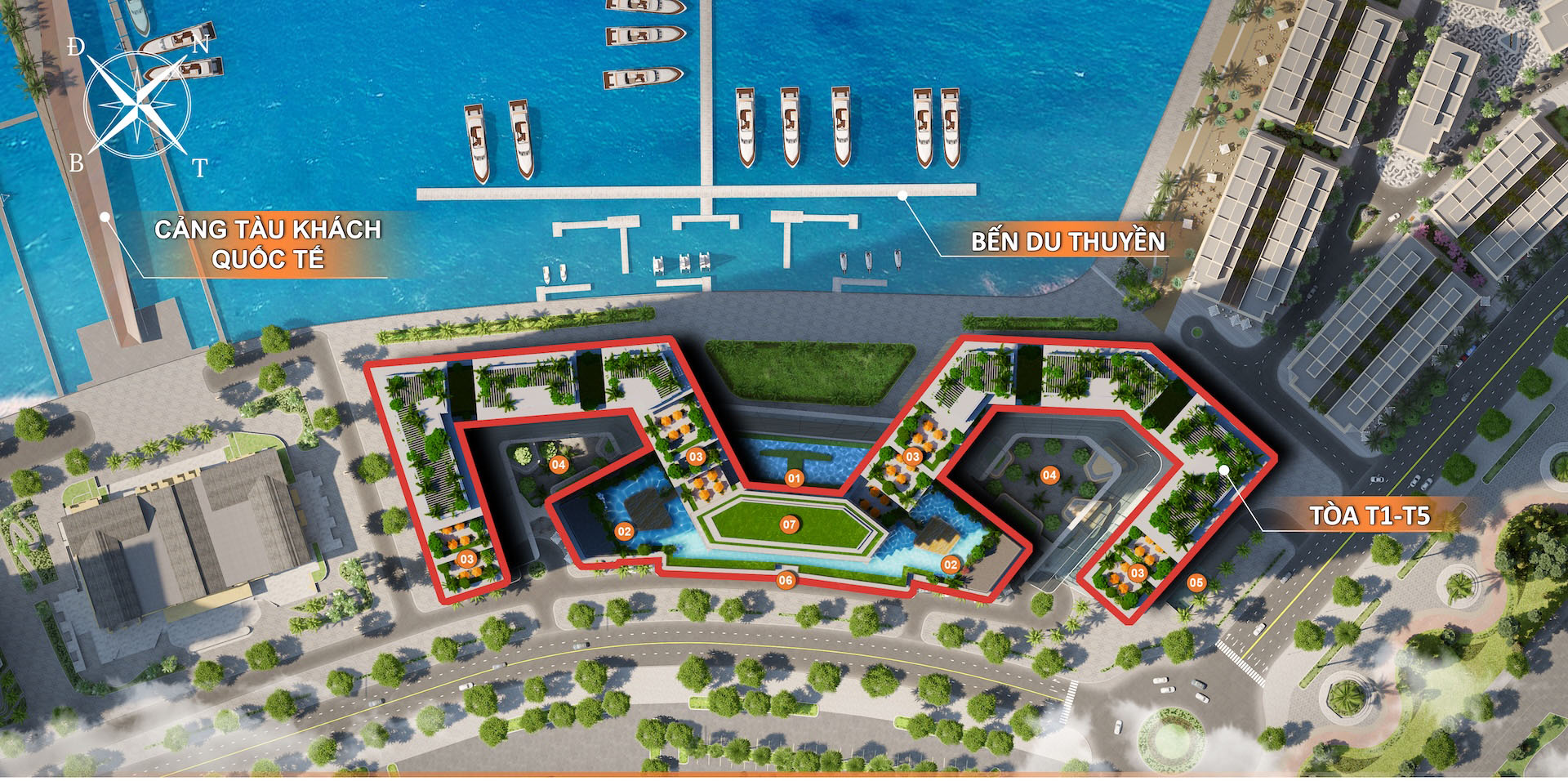Sở hữu vị trí địa lý vô cùng đắt giá khi tọa lạc ngay trung tâm Bãi Cháy, TP. Hạ Long, tỉnh Quảng Ninh một trong những khu vực phát triển sôi động và đắt đỏ nhất miền Bắc. Dự án nằm sát mặt biển, ngay tại điểm giao giữa đường Kỳ Quan và tuyến đường Thương Cảng, mang đến tầm nhìn triệu đô hướng thẳng ra vịnh Hạ Long. Đây không chỉ là lợi thế về cảnh quan mà còn đảm bảo khả năng kết nối giao thông vượt trội, cả đường bộ lẫn đường thủy.