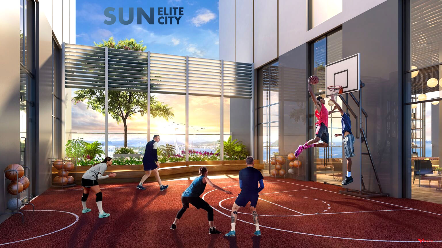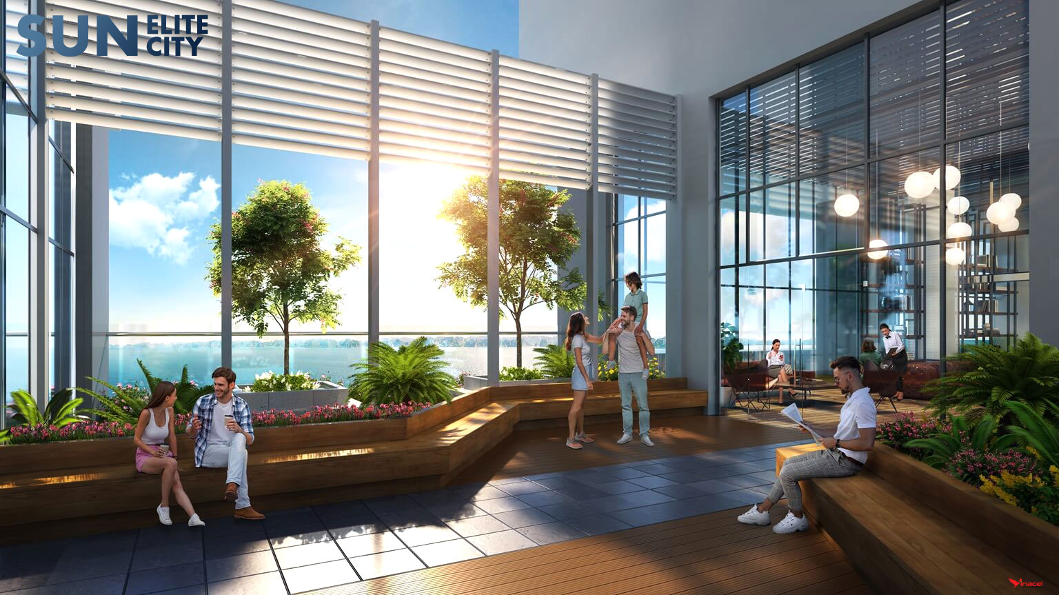 Không gian xanh được đan xen hợp lý: cứ mỗi 8 tầng lại có 1 vườn thượng uyển trên cao. Thiết kế này giúp Sun Elite City Hạ Long trở thành dự án căn hộ cao cấp hiếm hoi mang cảm hứng resort thực thụ giữa lòng đô thị.