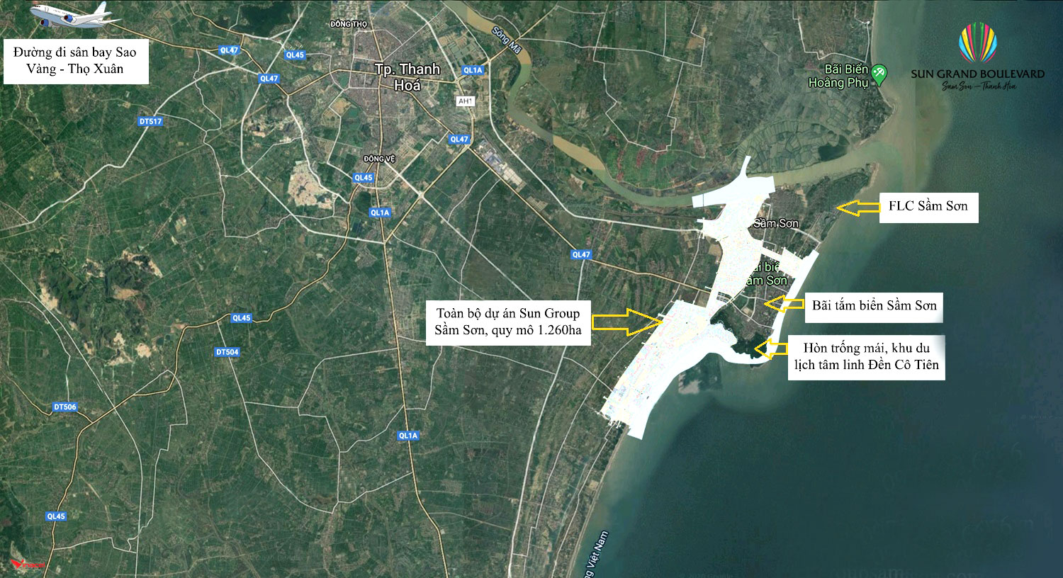 • Sun Group kỳ vọng sự xuất hiện của đại đô thị Sun Grand Boulevard tại mặt đường ven biển Hồ Xuân Hương sẽ thu hút dòng tiền lớn đổ vào bất động sản Sầm Sơn.