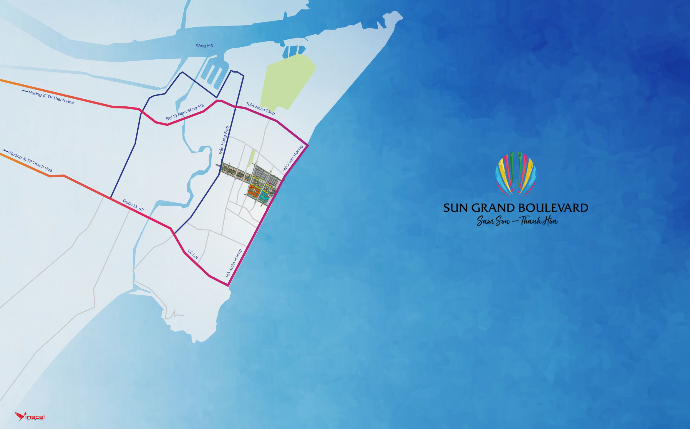 Sun Grand Boulevard toạ lạc tại vị trí trung tâm thành phố biển Sầm Sơn, một mặt tiếp giáp đường ven biển Hồ Xuân Hương qua Quảng trường biển và những tuyến phố chính sôi động. Mặt còn lại kết nối với Khu Đô thị Nghỉ dưỡng ven sông Đơ cũng do Sun Group tiếp tục phát triển. Cùng với hệ sinh thái mang thương hiệu Sun Group, Sun Grand Boulevard sẽ thắp sáng Sầm Sơn 24/7, sớm trở thành toạ độ “phải đến” trên bản đồ du lịch Việt.