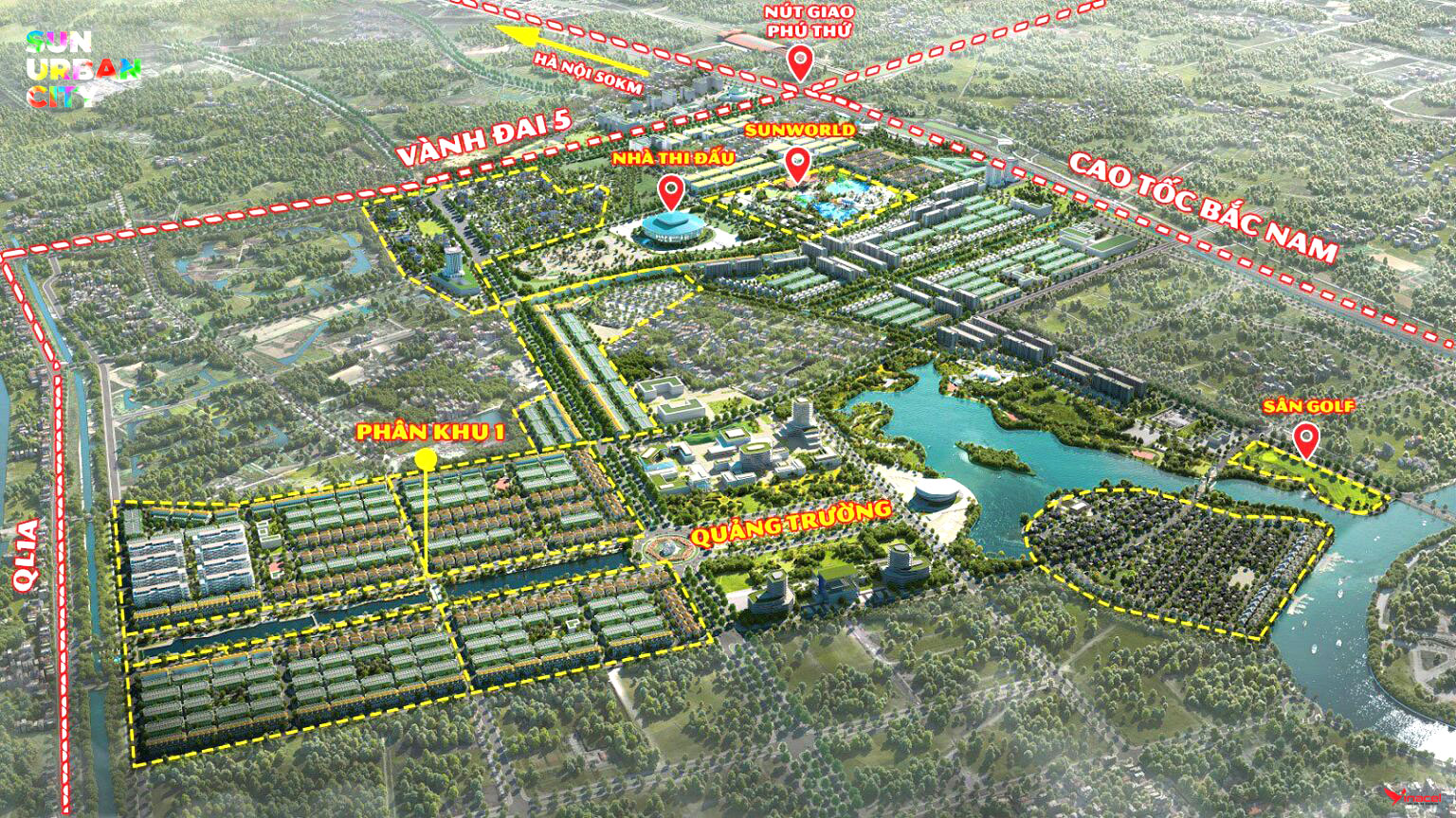 • Sun Urban City được quy hoạch để trở thành trung tâm công nghiệp – công nghệ cao, thân thiện với môi trường và là trung tâm du lịch văn hóa của khu vực. Với tầm nhìn đến năm 2050, Hà Nam đang hướng tới mục tiêu trở thành thành phố trực thuộc trung ương. Trong quá trình này, hạ tầng giao thông của Hà Nam được quy hoạch đồng bộ và bài bản, tạo nên một lực đẩy quan trọng cho sự phát triển bền vững của khu vực.