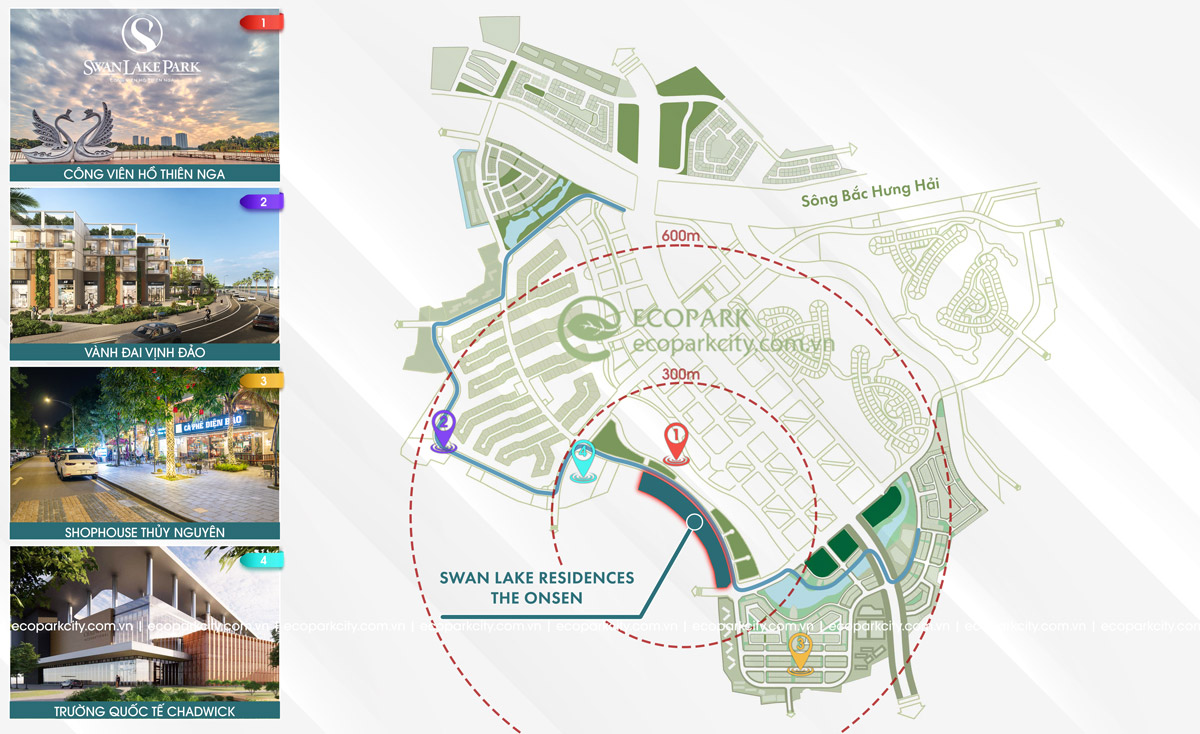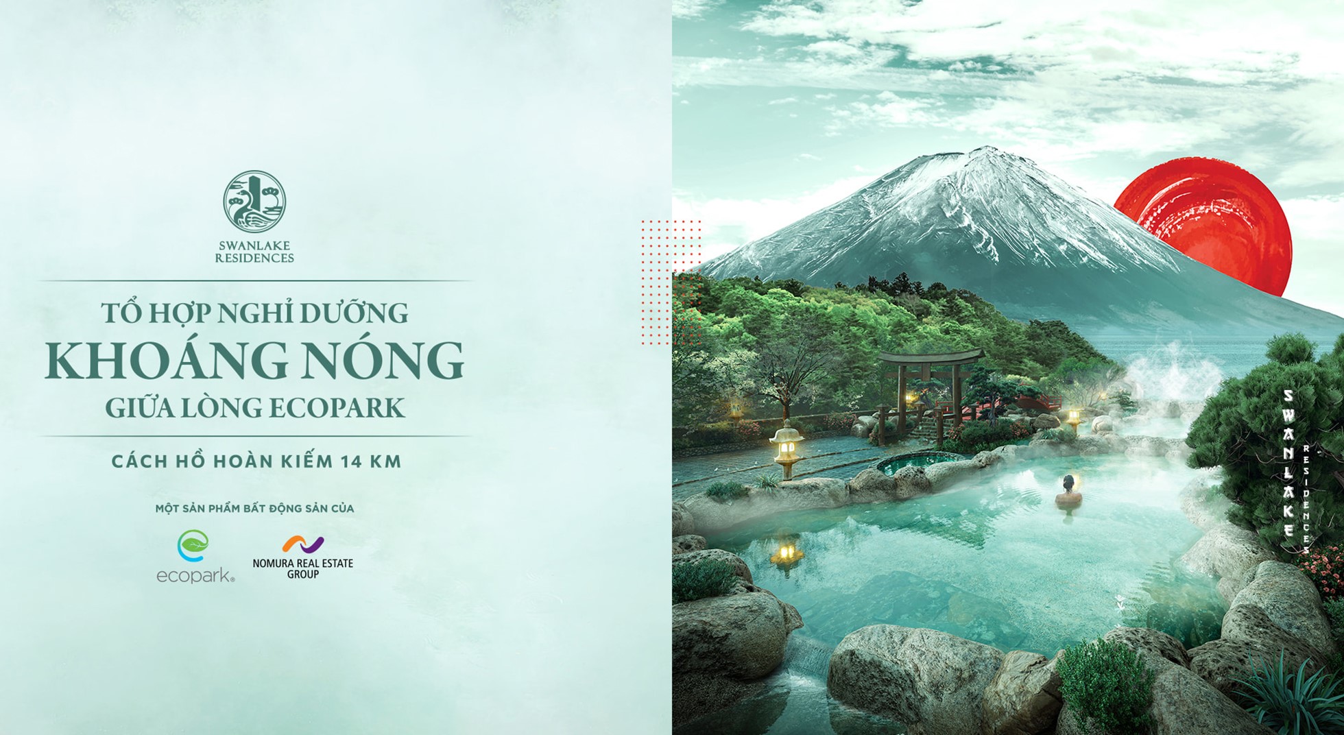 Mô hình bất động sản trị liệu đầu tiên của Việt Nam nằm trong Ecopark: Khác với những khu nghỉ dưỡng khoáng nóng khác tại Việt Nam, Swan Lake The Onsen mang đến một liệu trình tắm khoáng nóng chuẩn Nhật nhờ công nghệ I-on hóa khoáng chất Kankyo với chất lượng chưa từng có tại Việt Nam, cùng chuỗi tiện ích chăm sóc sức khỏe đẳng cấp.
