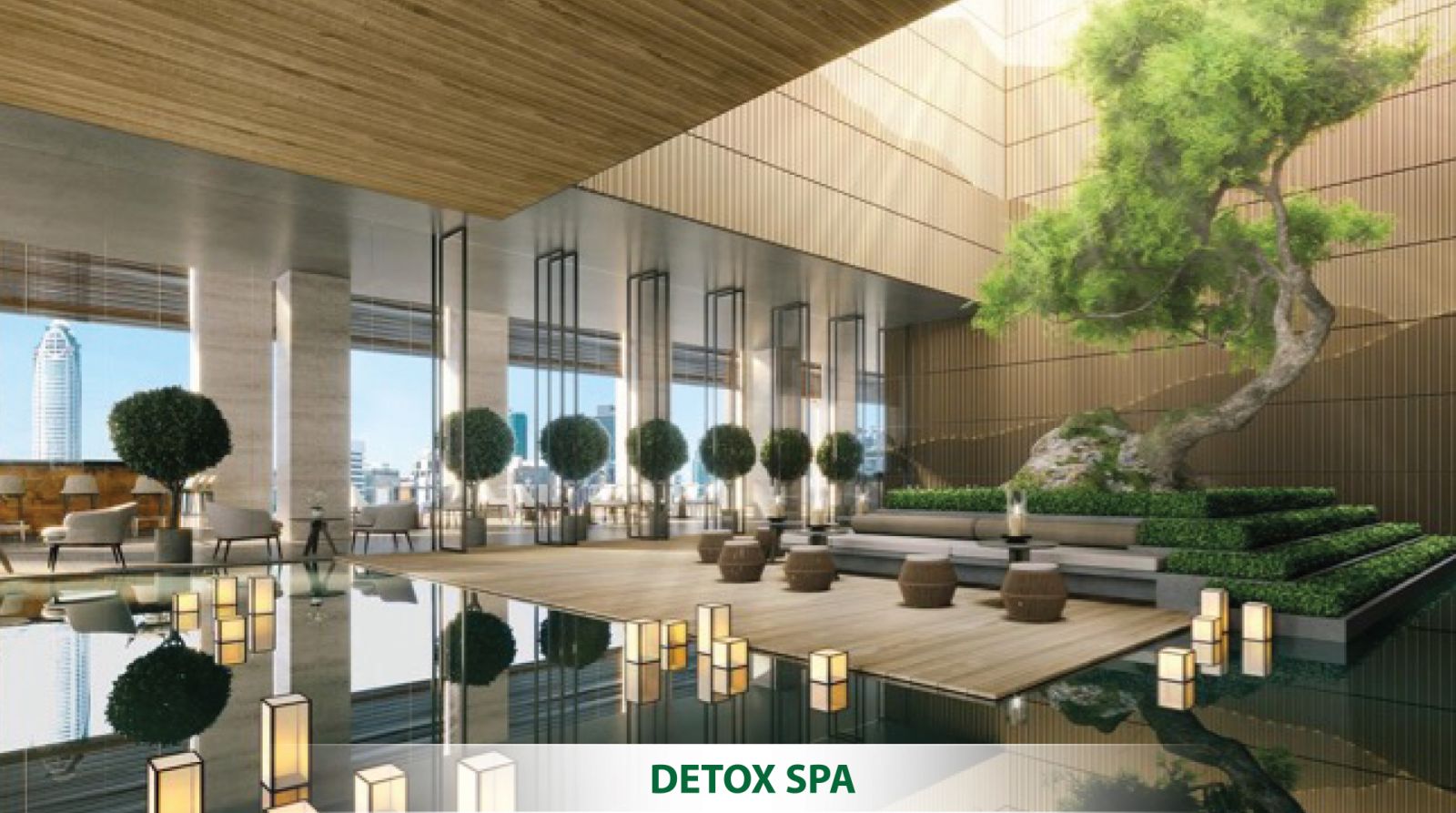 Tổ hợp Detox & Spa này sẽ được chia ra làm 3 phân khu: Detox Spa, Central Spa, Aqua Spa. Phân khu quan trọng nhất là Detox Spa sẽ có chuỗi phòng detox trị liệu, detox quang học, chuỗi detox, chuỗi nhà hàng, cửa hàng cung cấp cho quá trình detox của cư dân,… Tổ hợp thứ hai là Central Spa đây là đại spa trung tâm với các công nghệ chăm sóc da, tóc, giảm mỡ với các loại máy móc hiện đại nhất. Đắt giá nhất là tổ hợp Aqua Spa trong đó có phòng lạnh âm với các loại máy móc và nhiệt độ duy trì từ -5 đến 0 độ C. Triệu phú Ý cũng là người sở hữu phòng lạnh âm này bởi đây là phương pháp khiến ông “cải lão hoàn đồng” dù đã 49 tuổi.