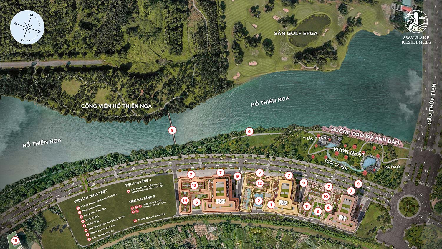 Mặt bằng thiết kế hoàn hảo tại toà tháp biểu tượng Swan Lake Onsen Ecopark
