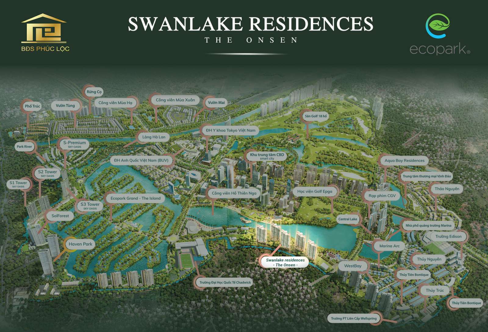Swan Lake Onsen là dự án căn hộ khoáng nóng tại gia đầu tiên tại Việt Nam, sở hữu tổ hợp khoáng nóng và tổ hợp chăm sóc sức khoẻ hiện đại nhất Việt Nam. Với việc toạ lạc bên cạnh cung đường công viên Hồ Thiên Nga, Swan Lake Onsen đang được mệnh danh là dự án có vị trí trung tâm đẹp nhất Ecopark.