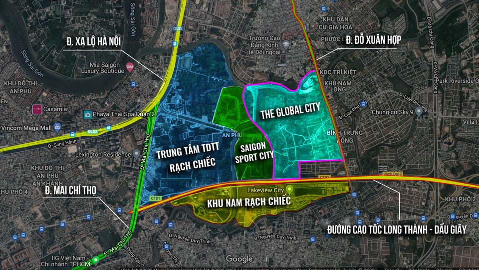 The Global City liền kề khu liên hợp thể thao Rạch Chiếc, nơi được quy hoạch để trở thành trung tâm thể thao và giải trí hàng đầu khu vực. Với vốn đầu tư hơn 21.000 tỷ đồng, khu vực này sẽ bao gồm các công trình thể thao đạt chuẩn Olympic, thu hút nhiều sự kiện quốc tế và góp phần nâng cao giá trị bất động sản xung quanh.