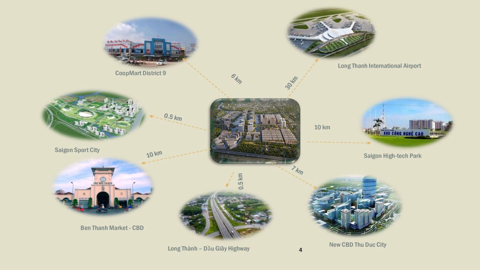 Từ dự án, cư dân chỉ mất khoảng 10 phút để di chuyển đến trung tâm Quận 1 thông qua hầm Thủ Thiêm. Các khu đô thị cao cấp như Thảo Điền, Thủ Thiêm, cùng với hệ thống trường học, bệnh viện và trung tâm thương mại đều nằm trong bán kính 5-10 phút di chuyển, đáp ứng đầy đủ nhu cầu sinh hoạt hàng ngày.