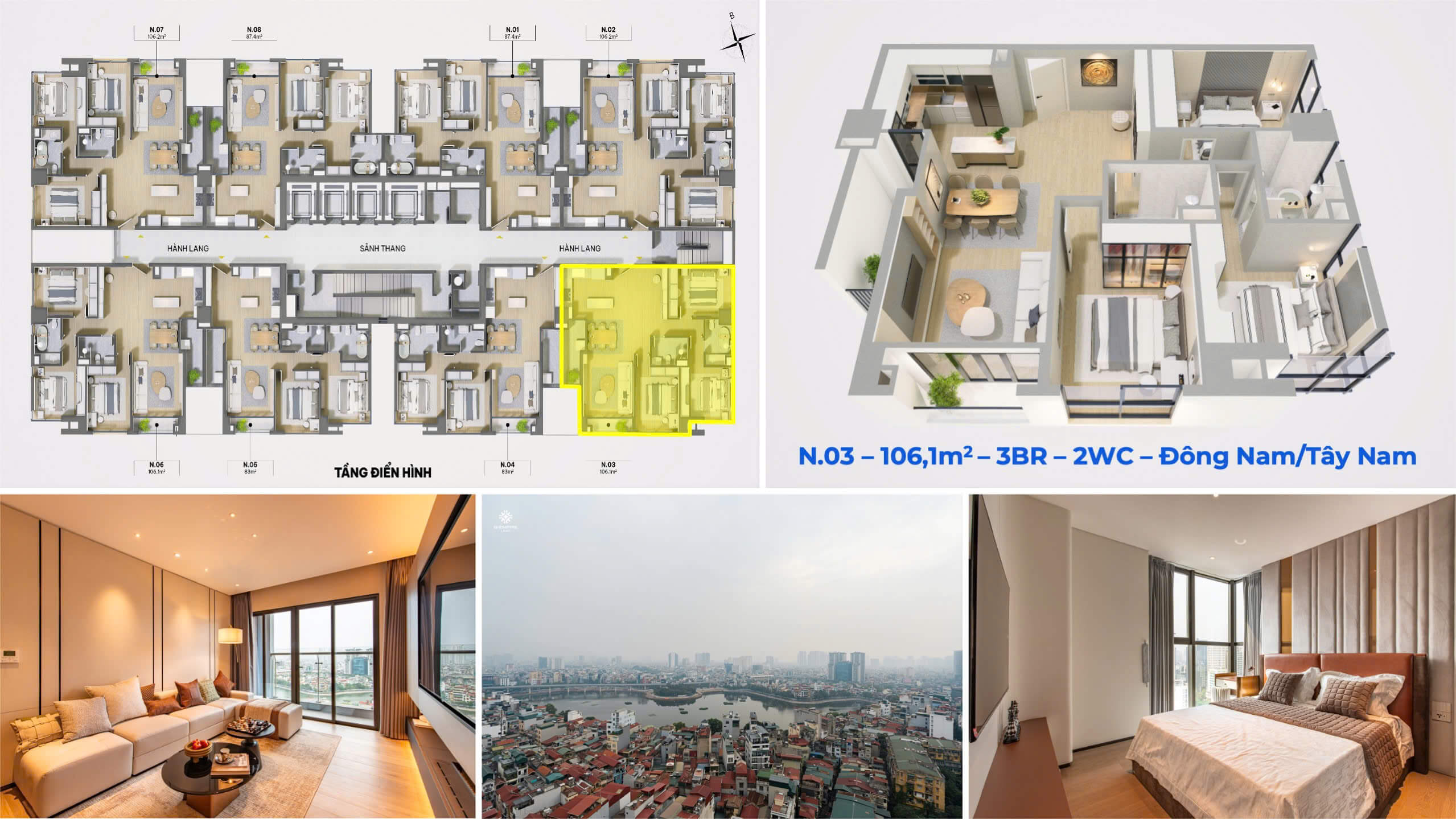 • Căn hộ 3 phòng ngủ: 106 m2