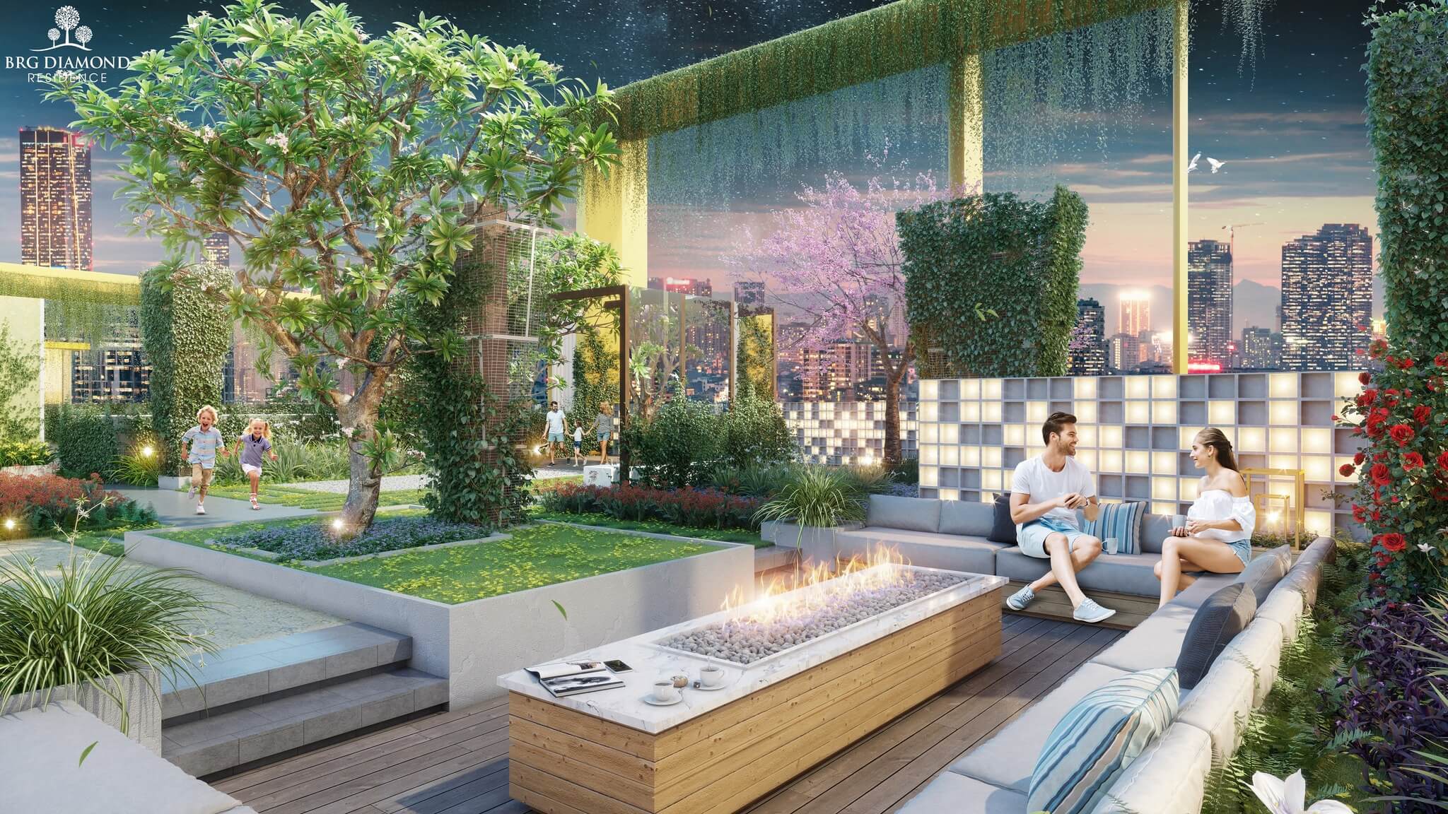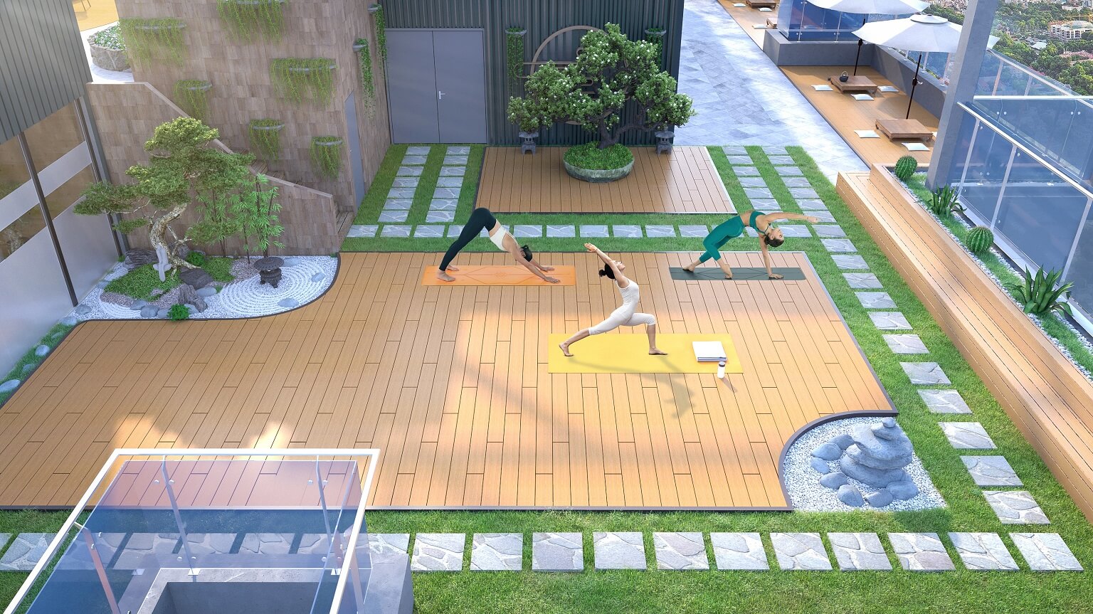 • Khu vườn dạo tầng mái