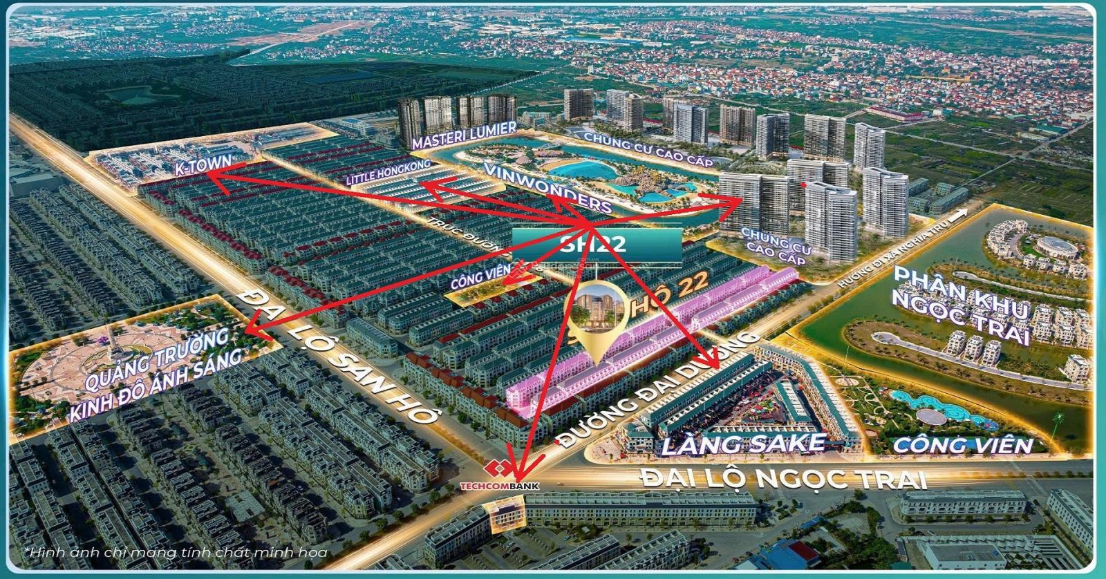 • Phân khu Kinh đô ánh sáng: Có diện tích 24ha với 724 căn thấp tầng đều là shophouse.