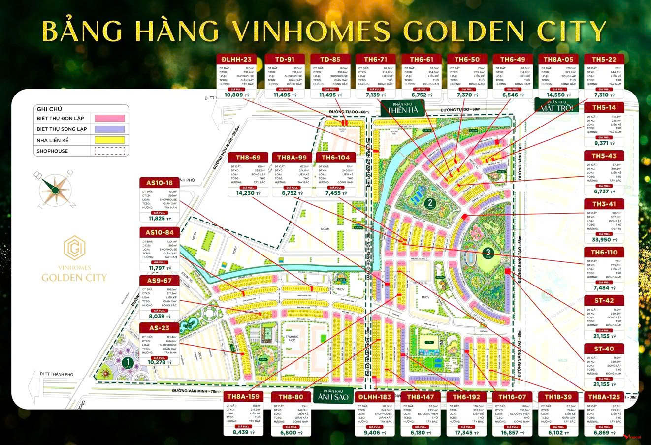 • Loại hình: Căn hộ chung cư, Liền kề, Shophouse, Biệt thự song lập, Biêt thự đơn lập.