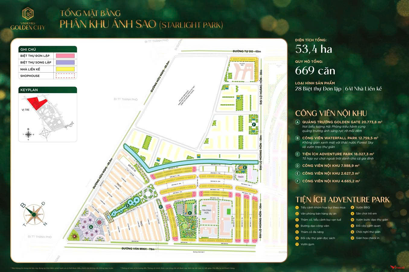 • Star Square: Quảng trường trung tâm 2ha.